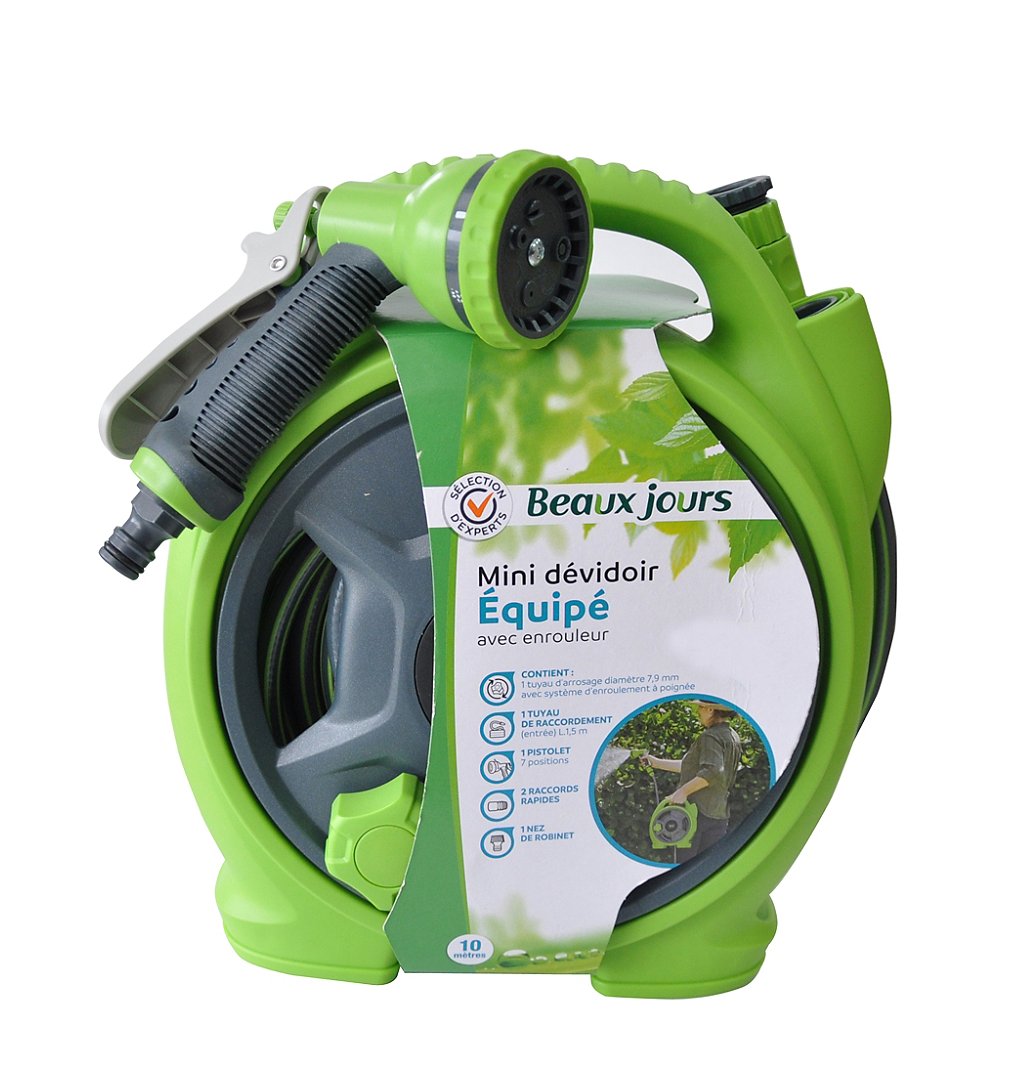 | Libellé | Mini dévidoir équipe avec enrouleur et tuyau d'arrosage 10m - Sélection d'Experts - Beaux Jours |