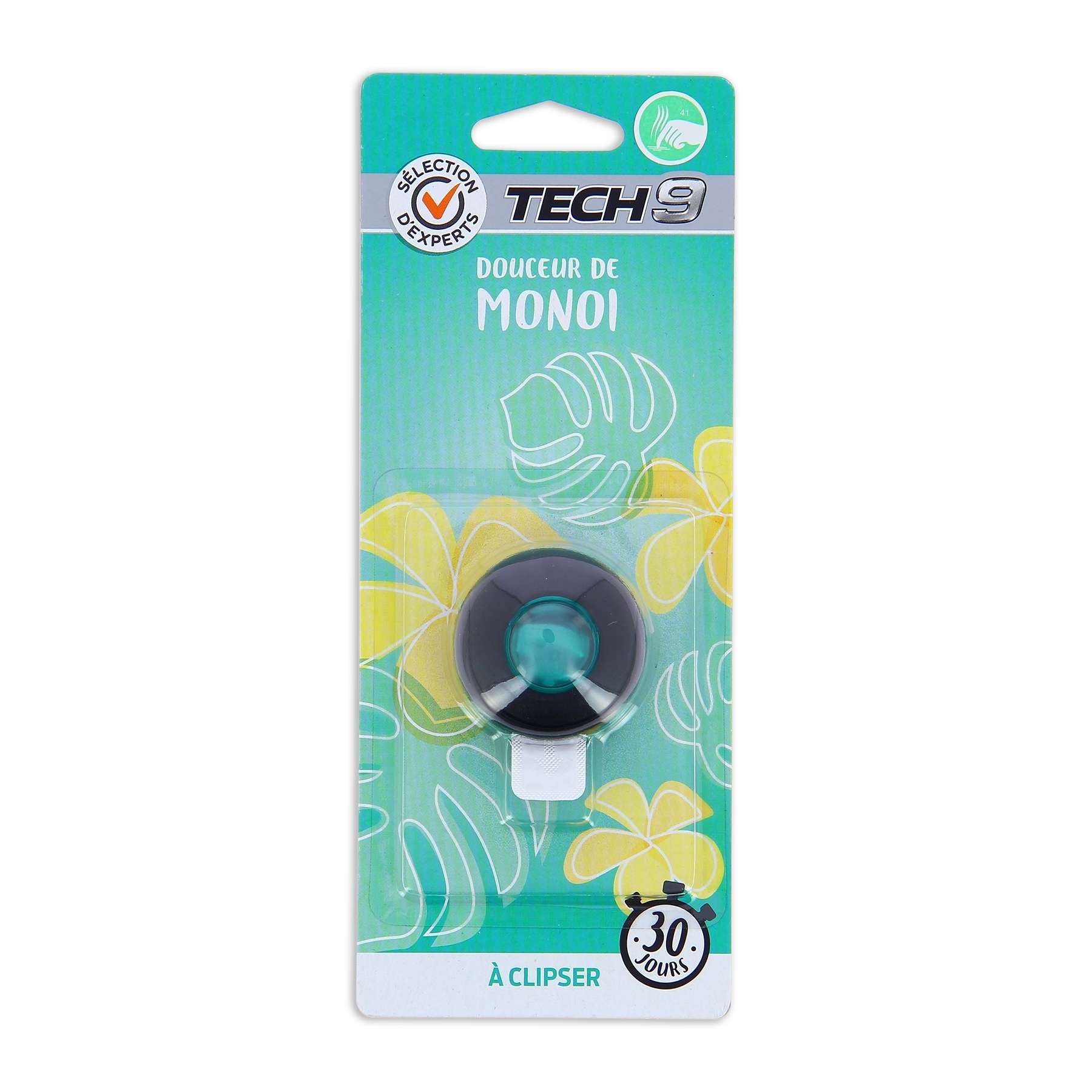 Ce désodorisant TECH9 diffuse un agréable parfum marin dans votre habitacle pendant 30 jours. Il est muni d'une petite languette pour le suspendre au rétroviseur de votre véhicule.