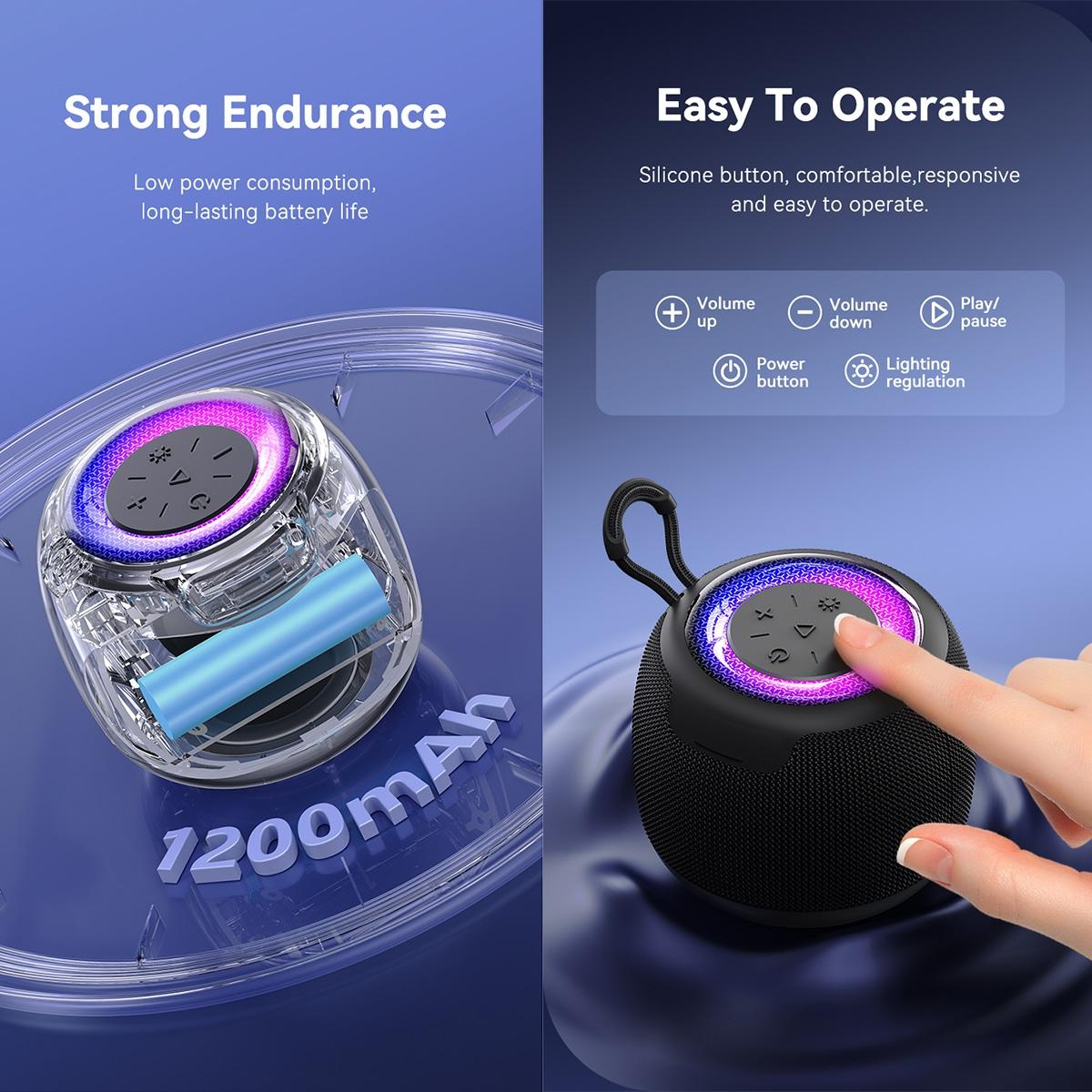 Mini Enceinte Bluetooth 5.3 TWS Portable Avec Lumières Ambiance Et Lanière YONIS