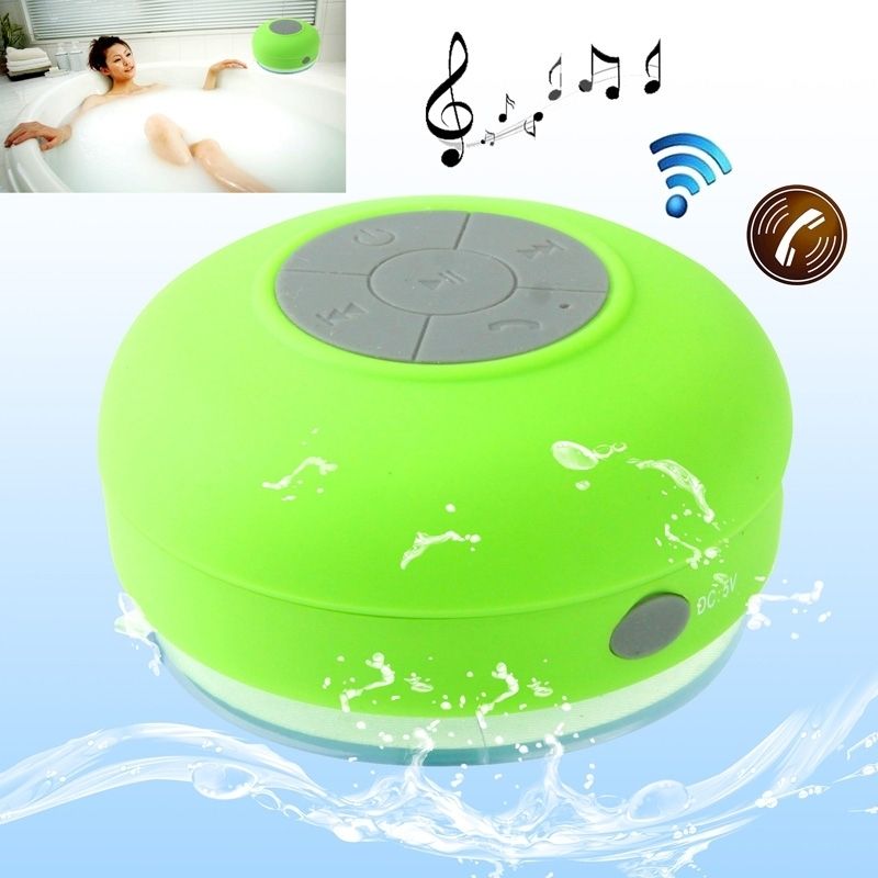 Mini Enceinte Bluetooth Ronde Kit Mains Libres Avec Ventouse Waterproof Vert YONIS