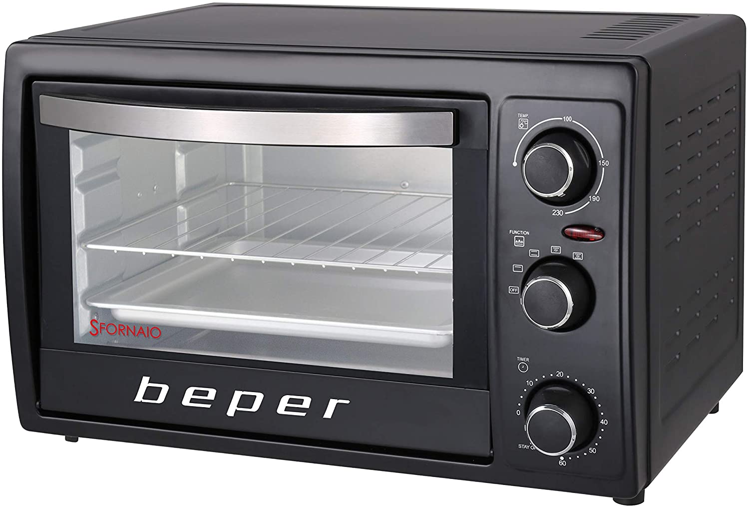 Un four avec une capacité de 30L, une portière à double verre pour garantir la tenue de la chaleur et des éléments réchauffant en acier. 4 modalités de cuisson : une base, une grille, un combiné et une ventilation, avec une température réglable jusqu’à 230°. Une lumière interne, un indicateur de fonctionnement et une minuterie programmable jusqu’à 60 minutes avec une sonnette. Il est complet de grille en acier, d’un plateau en aluminium et d’une poignée pour enlever la grille. 90.885 – Four 35 L