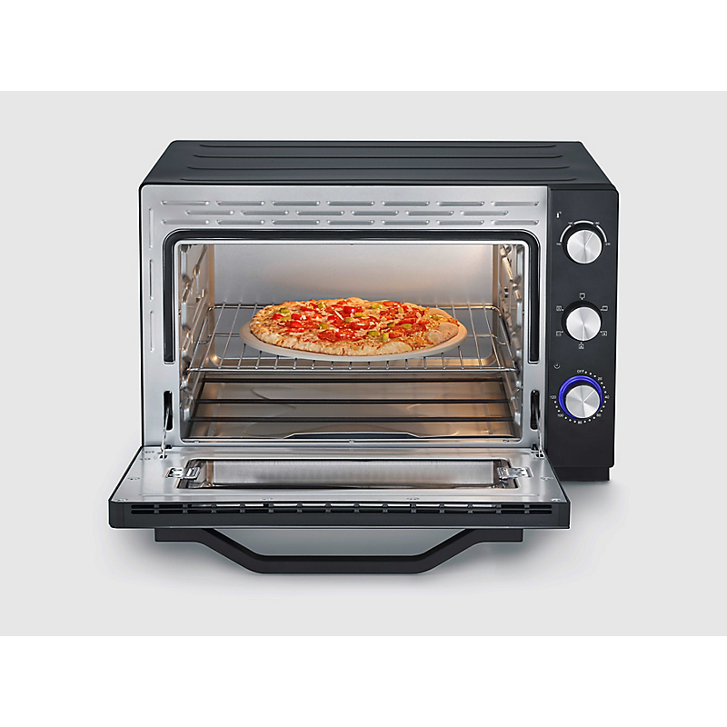 Accessoires inclus Grille, Plaque de four, Tournebroche, Pierre à pizza, Plat ramasse-miettes amovible, 2 poignées d'extraction