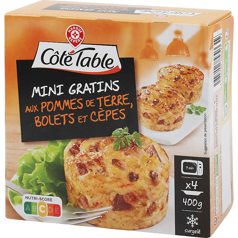 Préparation à base de pommes de terre, champignons, crème fraîche et emmental, cuite, surgelée COTE TABLE