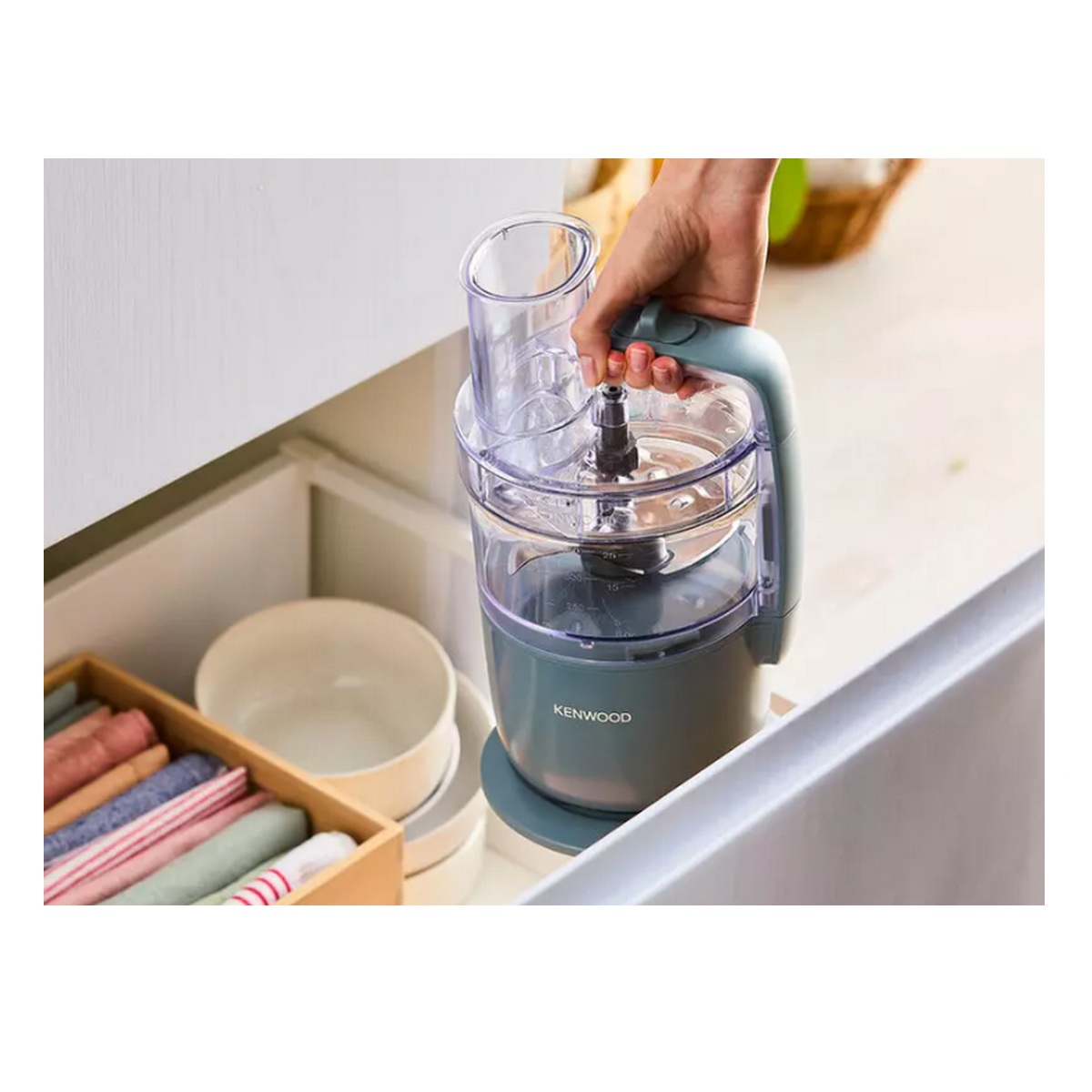 FDP22.140GY - mini hachoir multifonction 1.3l 650w - Mini robot MultiPro Go Kenwood FDP22.140GY. Il est facile à ranger grâce à sa taille mini et aux accessoires qui se rangent simplement dans le bol. Facile à transporter grâce à sa poignée sur le couvercle, le cordon peut même s’enrouler autour de la base. Un gain de place sur votre plan de travail et une cuisine toujours rangée et propre. Mini robot, pouvoirs illimités. La taille d’un mini-hachoir avec la polyvalence d’un robot multifonction. Râper, émincer, mélanger, réduire en purée, hacher, émulsionner, pétrir, mixer : il sait tout faire grâce à ses couteaux et à ses 2 disques en acier inoxydable fournis. Son secret pour s’adapter aux petites comme aux grandes tablées : le système Express ServeTM pour râper et émincer les légumes dans le bol ou en illimité directement dans un saladier. Pilotez votre robot d’un seul doigt pour gérer la vitesse et la touche Pulse. La préparation des repas devient un jeu d’enfant. Le sélecteur de vitesse est toujours visible et facile à manipuler. Un robot pour toute la famille, sans risque de mauvaise manipulation.