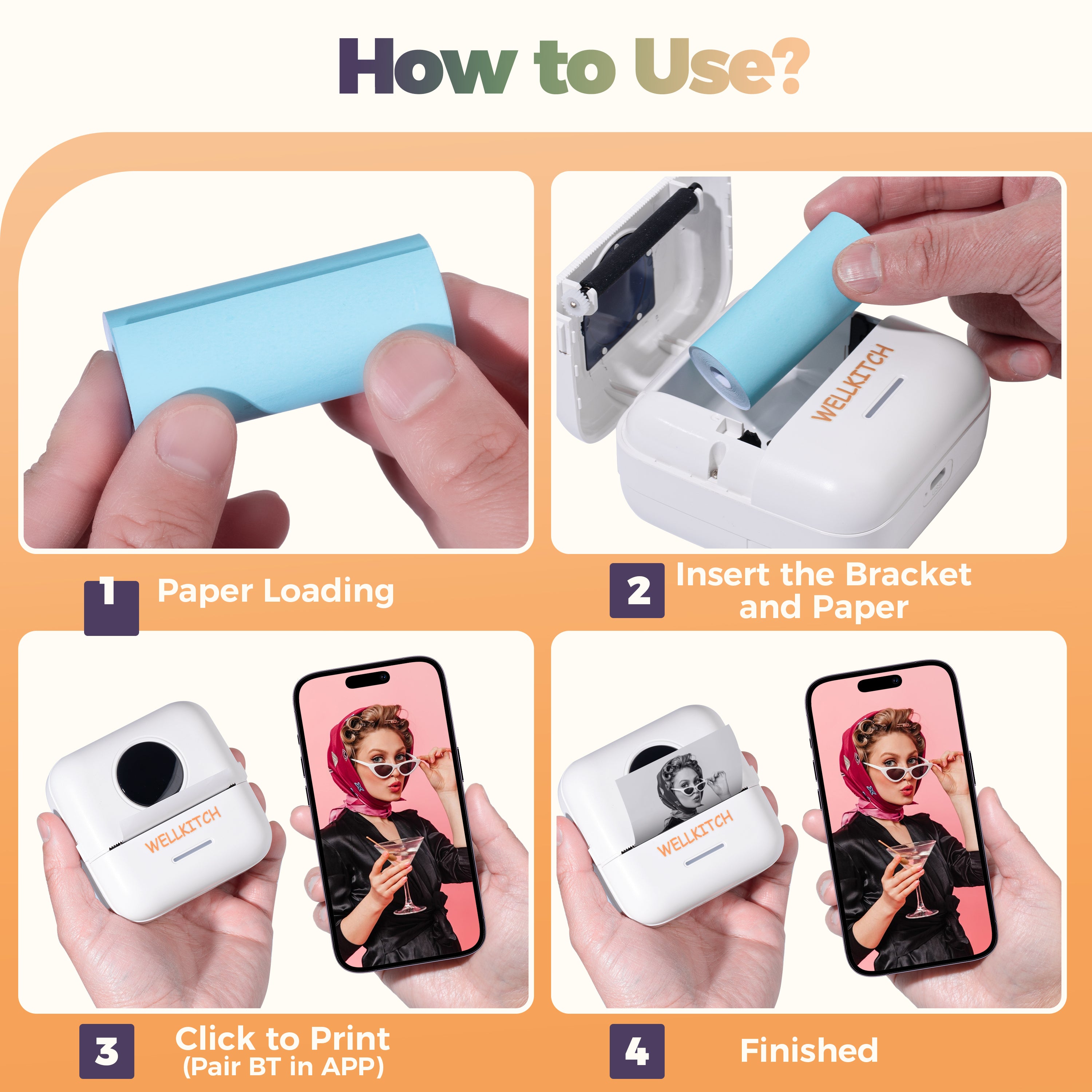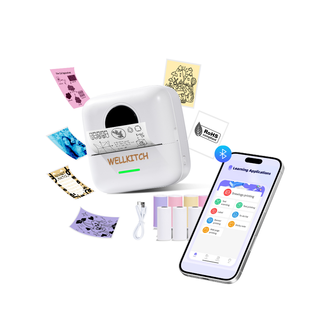 Imprimante photo portable Wellkitch Mini est un appareil pratique et compact pour imprimer instantanément vos photos préférées depuis votre téléphone via une connexion sans fil. Livrée avec 13 rouleaux de papier et 5 stylos pour étiquettes, cette imprimante est idéale pour immortaliser des souvenirs, créer des étiquettes personnalisées ou décorer vos albums photos.Facile à utiliser et à transporter, elle s'adapte parfaitement à une utilisation quotidienne ou pour des événements spéciaux.