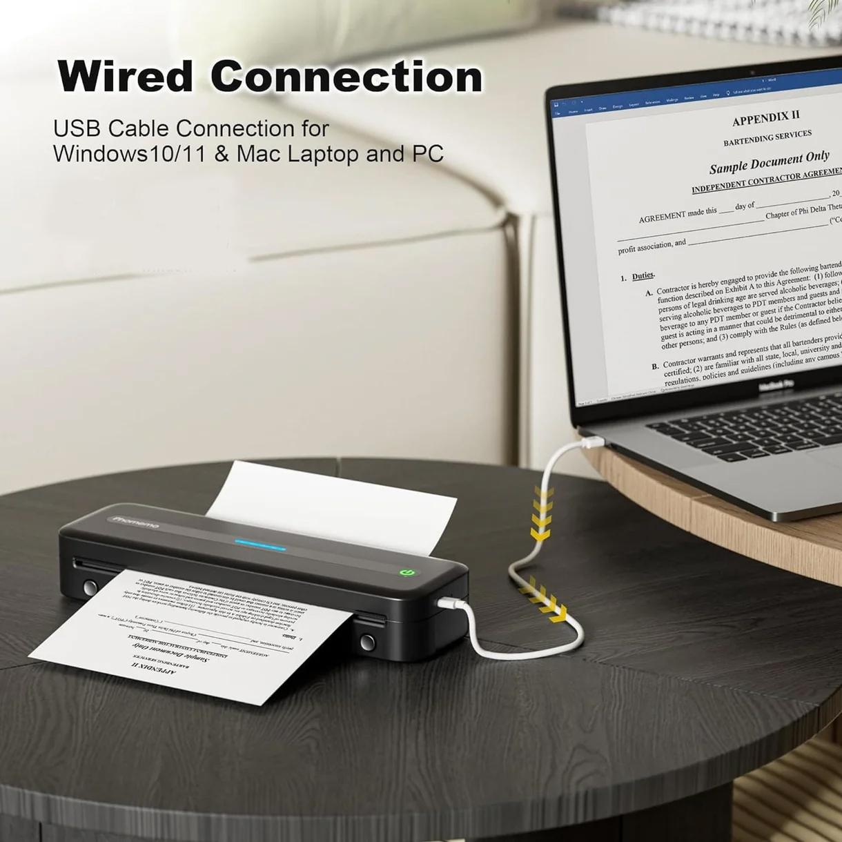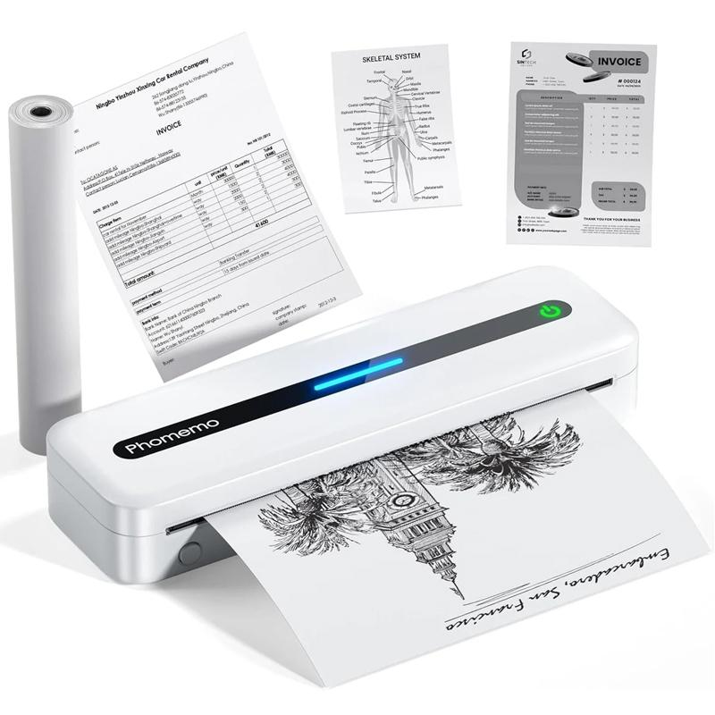 Polyvalence de la Mini ImprimanteCette Mini Imprimante supporte 5 formats de papier, dont le A4 et le format US Letter, et 3 types de papier : rouleau, plié et ordinaire. Parfaite pour imprimer des reçus, contrats, photos et plus encore.