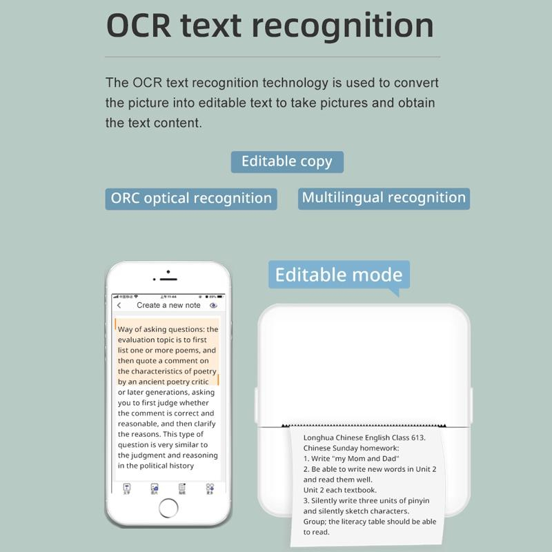 Équipée d'une batterie rechargeable de 1200mAh, la Mini Imprimante offre une utilisation prolongée. Elle prend en charge divers modes d'impression, idéale pour photos, notes, listes, étiquettes et plus encore.