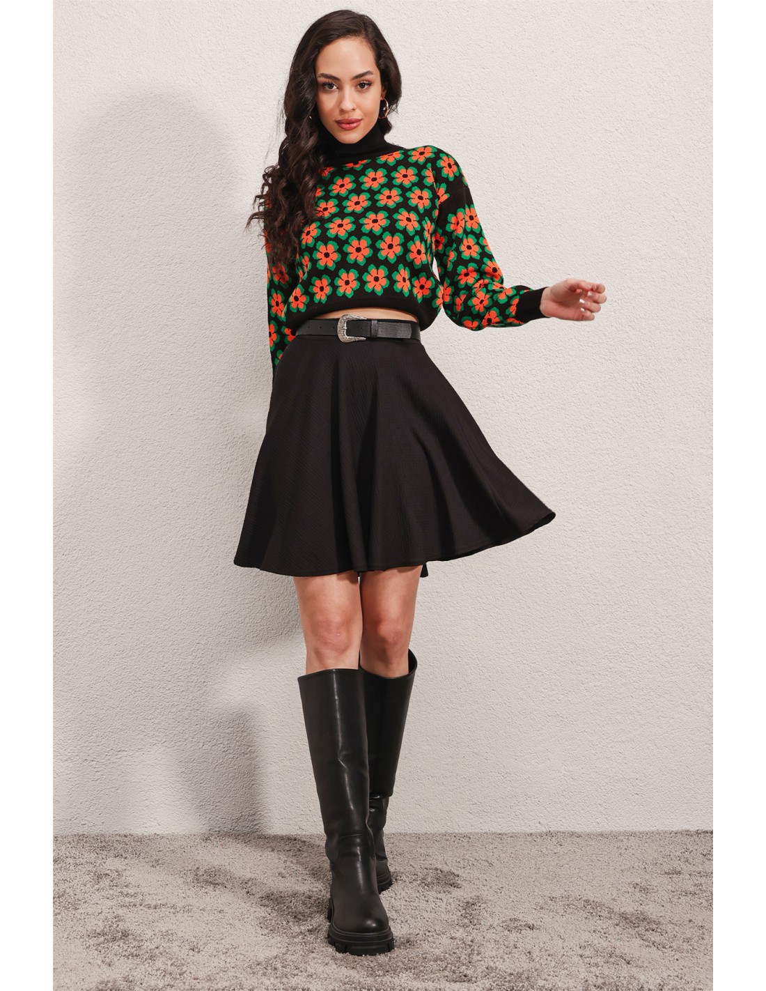 Mini Jupe Evasée, 97% polyester et 3% lycra,