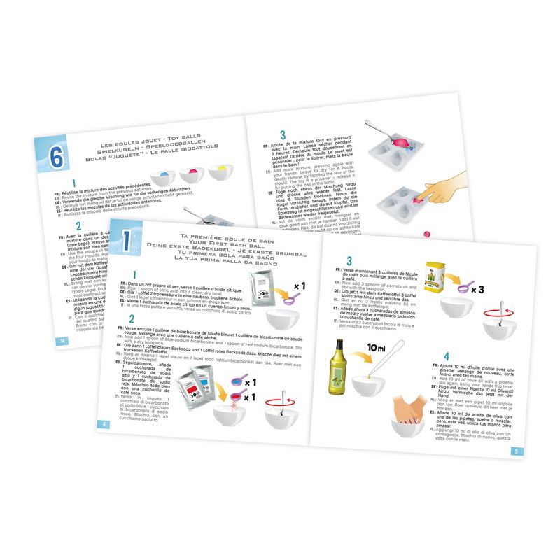 Un coffret pour créer des boules de bain de toutes les couleurs. Une fois dans l'eau, les boules font des bulles et colorent le bain.