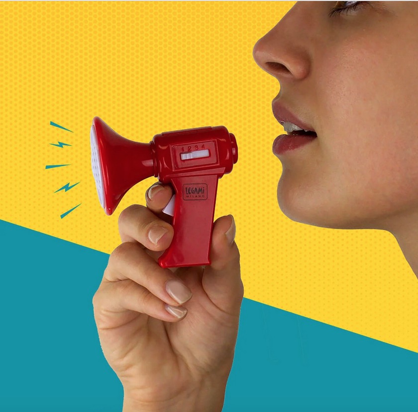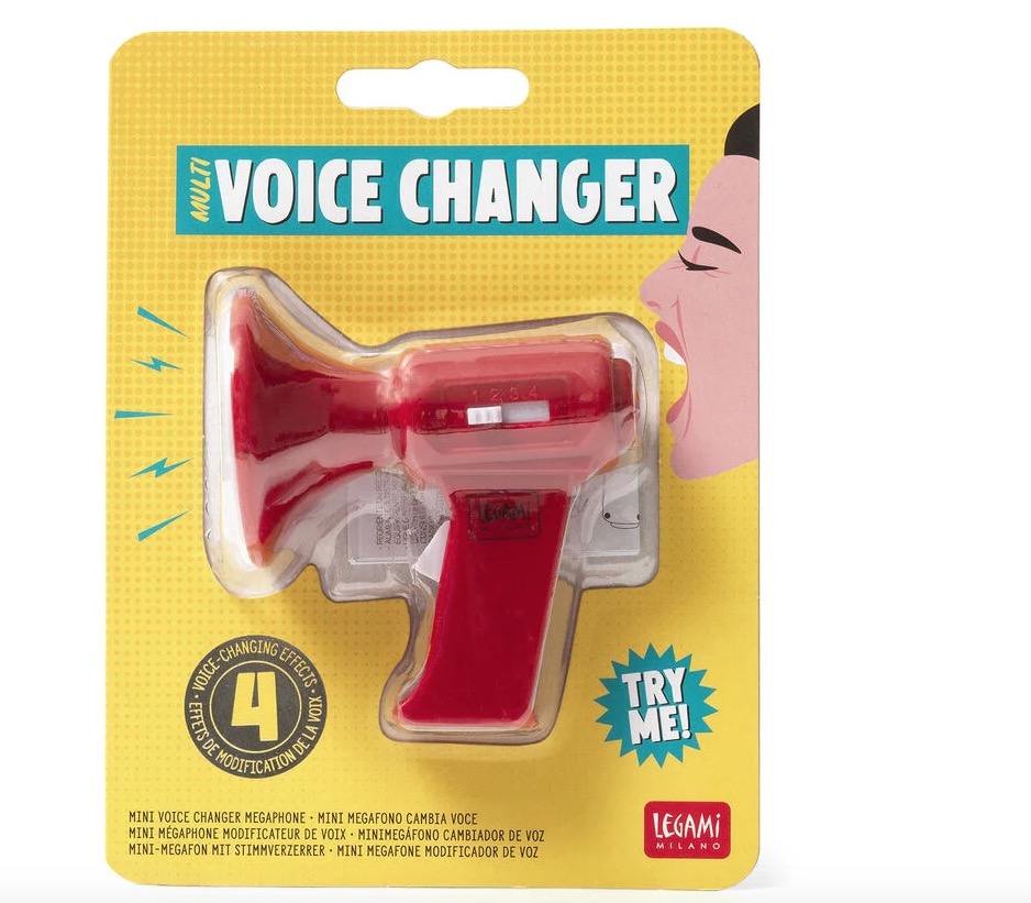 Avec le Mini Mégaphone Modificateur de Voix Legami, vous pourrez essayer 4 effets sonores et donne à chaque phrase le ton qu'elle mérite ! Nous, pour écrire cette description, nous les avons tous essayés. Vous n'avez pas entendu ?