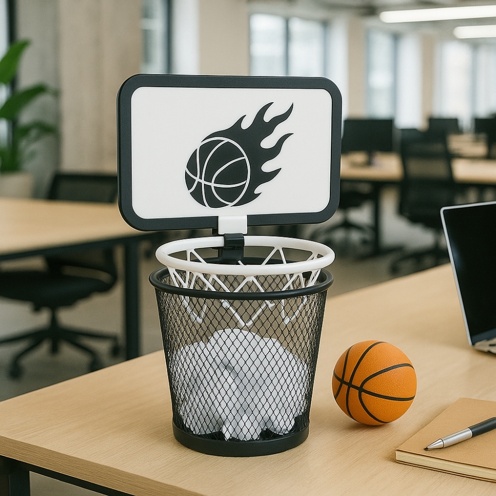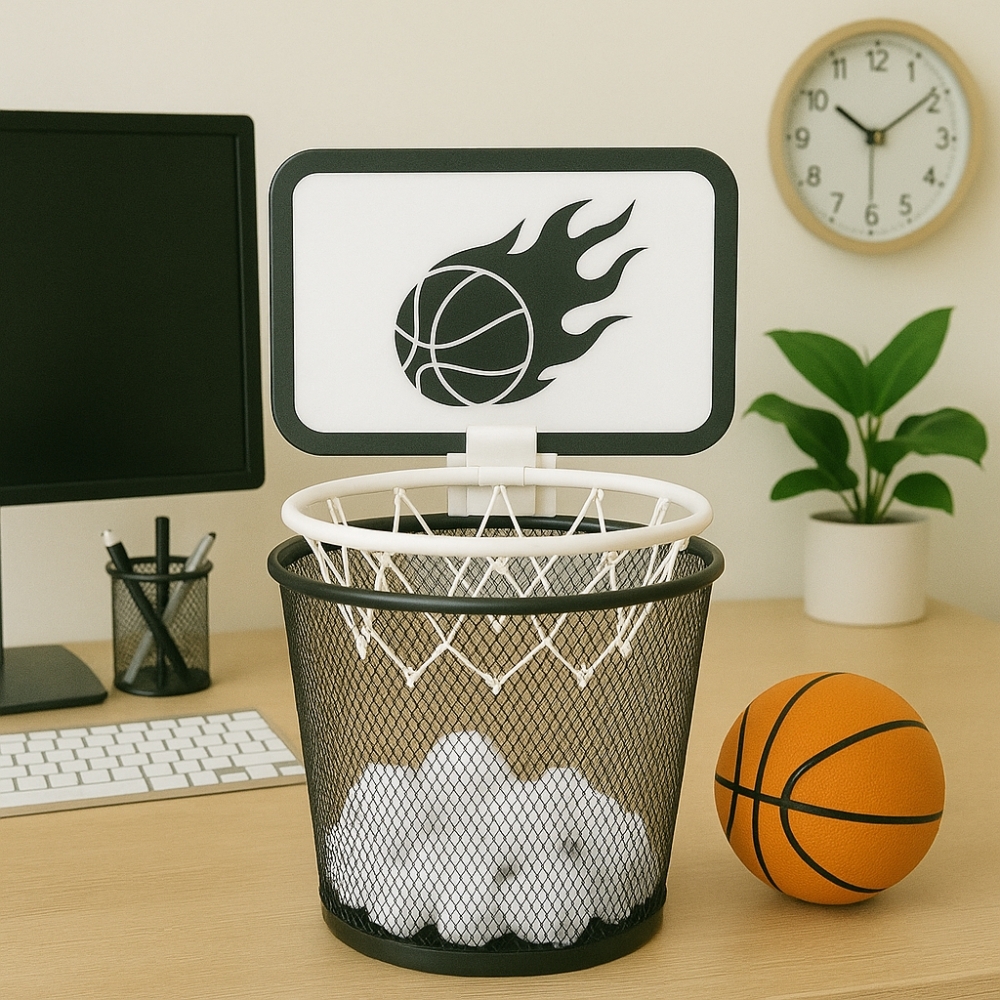 Transformez votre bureau en terrain de jeu ! Envie de rendre vos journées plus ludiques ? Le Mini Panier de Basket à Clipser sur Poubelle est l’accessoire parfait pour ajouter une touche de bonne humeur à votre environnement. Fabriqué en matériaux résistants et légers, il s’installe facilement grâce à ses crochets solides sans abîmer votre poubelle. Sa conception épurée offre un rendu moderne qui s'adapte aussi bien à un bureau qu’à une chambre d’enfant. Chaque lancer devient un mini-défi personnel qui booste la productivité et réduit le stress tout en apportant du fun. Offrez-vous un petit moment de détente entre deux réunions ou pendant vos sessions d’étude pour recharger vos batteries naturellement. Grâce à sa taille compacte et à sa fixation intelligente, il ne gêne en rien votre espace de travail, tout en restant toujours prêt à l'emploi pour un instant d'amusement spontané ! Libérez votre stress en vous amusant À chaque boulette de papier lancée dans le panier, vous libérez la pression accumulée au travail ou aux études. Cet accessoire devient votre meilleur allié pour transformer vos frustrations en tirs gagnants, apportant un effet relaxant immédiat et naturel. Optimisez vos pauses efficacement Plutôt que de perdre du temps sur votre téléphone, accordez-vous une pause active et amusante. Quelques tirs au panier suffisent à relancer votre concentration, en rendant vos pauses plus dynamiques et bénéfiques pour votre productivité. Décorez votre espace avec originalité Ce mini panier de basket apporte une touche unique à votre bureau ou à votre chambre. Élégant avec son style épuré en noir et blanc, il s'intègre facilement à tous types de décors, du plus sobre au plus créatif, sans jamais paraître encombrant. Installation rapide et sans outils Pas besoin de percer, ni de visser : il suffit de clipser le panier grâce à ses crochets spécialement conçus pour s’adapter à la plupart des poubelles standards. Léger mais robuste, il reste bien fixé même après de nombreux lancers de papier. CARACTÉRISTIQUES Plongez dans l'univers du fun sans effort grâce à des matériaux de qualité et un design pratique ! Dimensions du panier : Environ 18 cm de largeur. Matériaux : Plastique ABS robuste et filet en nylon résistant. Fixation : Crochets de serrage ajustables adaptés à la plupart des corbeilles. Inclus : Mini ballon à gonfler et sa pompe. Images générées par intelligence artificielle à des fins de présentation. Le produit réel peut présenter de légères différences.