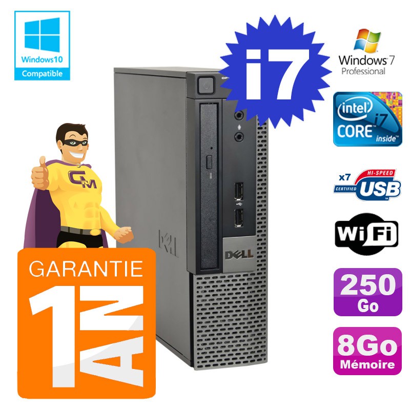 Mini PC Dell 790 Ultra USFF Core I7-2600 8Go Disque 250Go Wifi W7