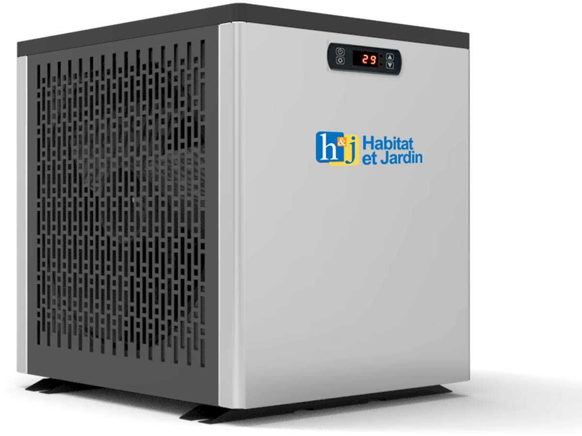 Mini pompe à chaleur pour piscineCette Mini pompe à chaleur est conçue pour les petites piscines, elle peut traiter une piscine contenant jusqu'à 20 mètres cubes d'eau. De plus elle est très silencieux et compact.La mini pompe à chaleur vous permet d'economiser en énergie et dispose d'une consommation électrique faible pour un prolongement au cours de la saison sans vous ruiner.Grâce à cette mini Pompe, vous pouvez désormais régler la température de l'eau de votre piscine !Mini Pompe à chaleur - Puissance 3.5 Kw - 39,4 x 44,4 x 43,5 cm - Métal - Noir et Gris .Puissance chaud: 0.65kW