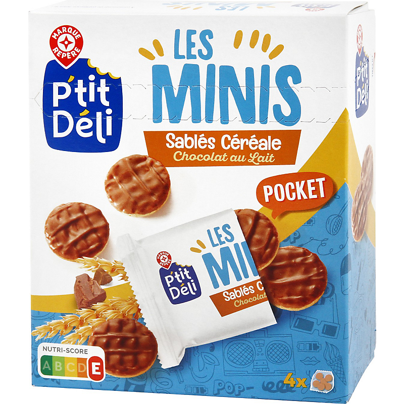 mini sablés céréales au chocolat au lait en sachet x 4 - 160 g - P'TIT DELI