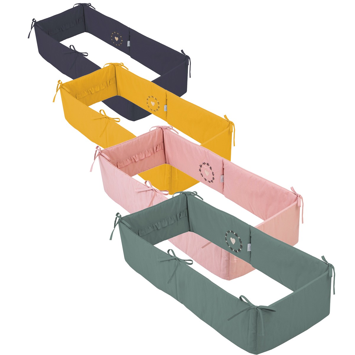 Joli tour de lit doux et respirant pour bébé avec broderie et volants.