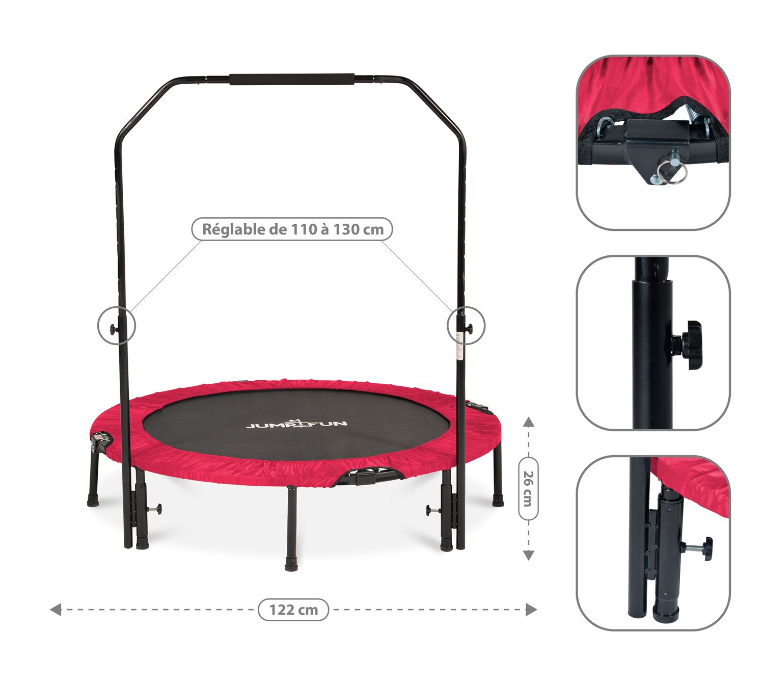 | Libellé | Mini Trampoline Fitness Jump4fun Pliable Door-Bar - 122cm Rouge |