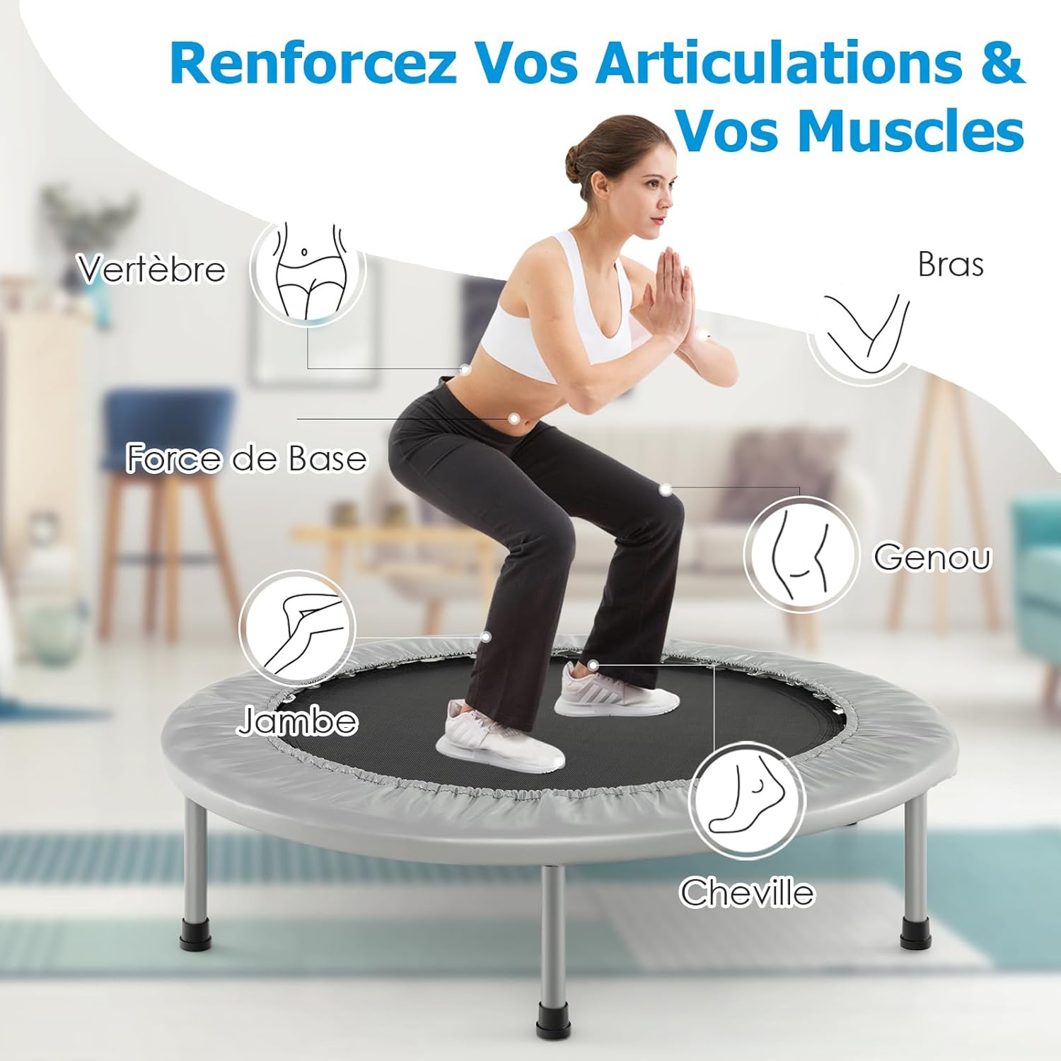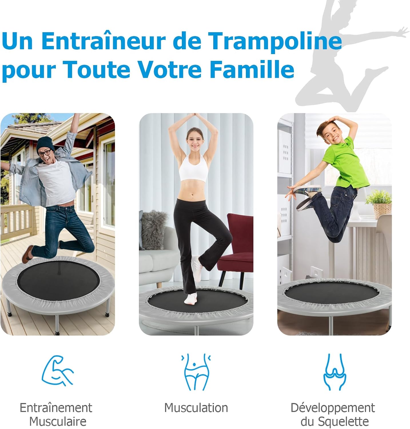 - Trampoline fitness polyvalent: L'exercice au trampoline est intéressant et a un bon effet réducteur de graisse, vous permettant d'atteindre facilement l'objectif de plasticité. L'exercice au trampoline est bénéfique pour l'équilibre et la croissance osseuse des enfants. Notre trampoline fitness convient à votre utilisation intérieure ou extérieure pour votre famille.