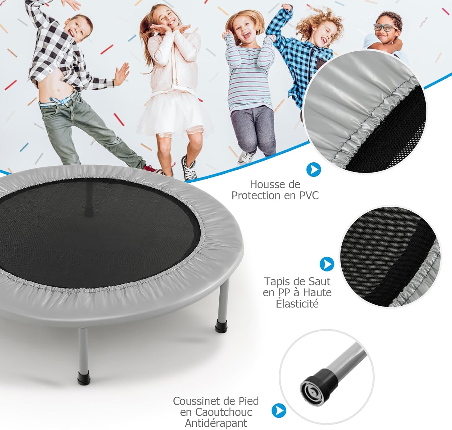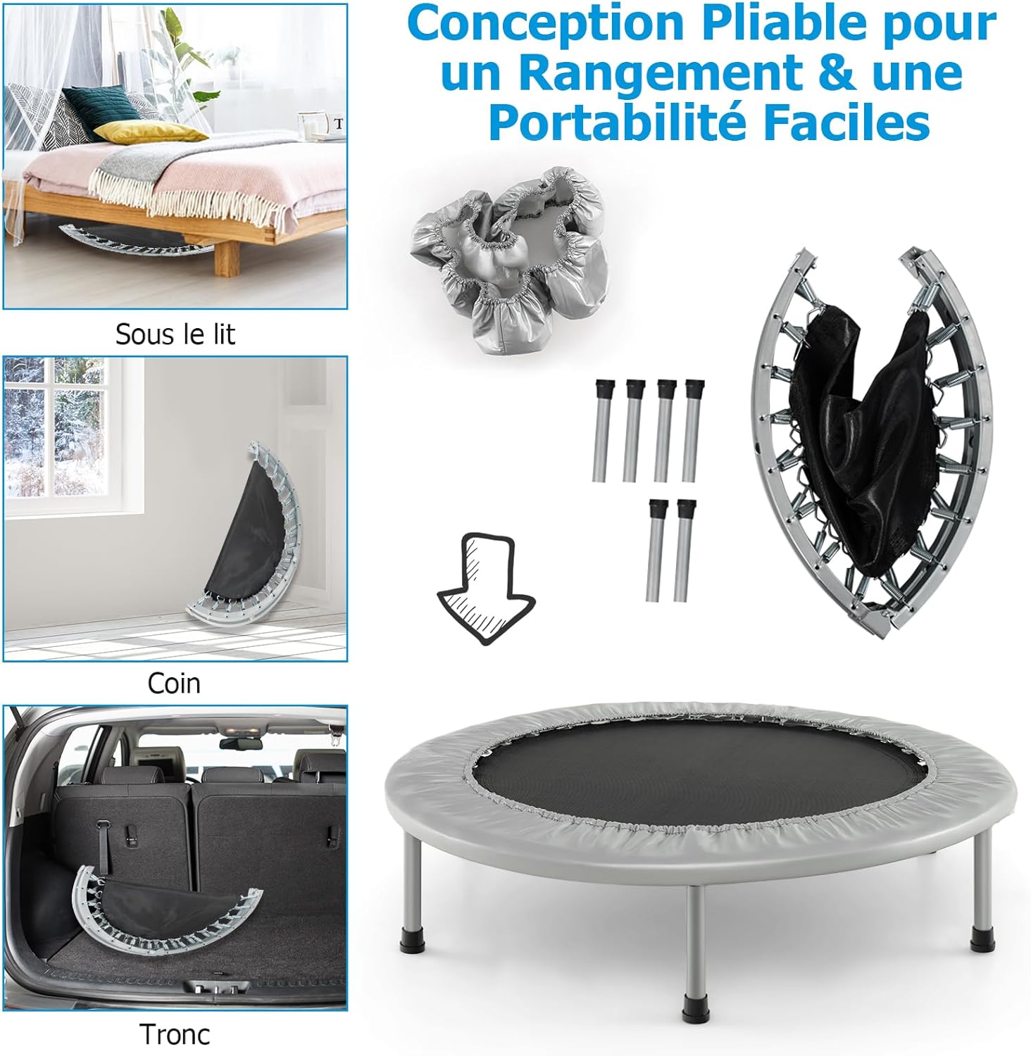 | Libellé | Mini trampoline fitness pliable trampoline de sport intérieur avec tapis de sécurité charge max 150kg |