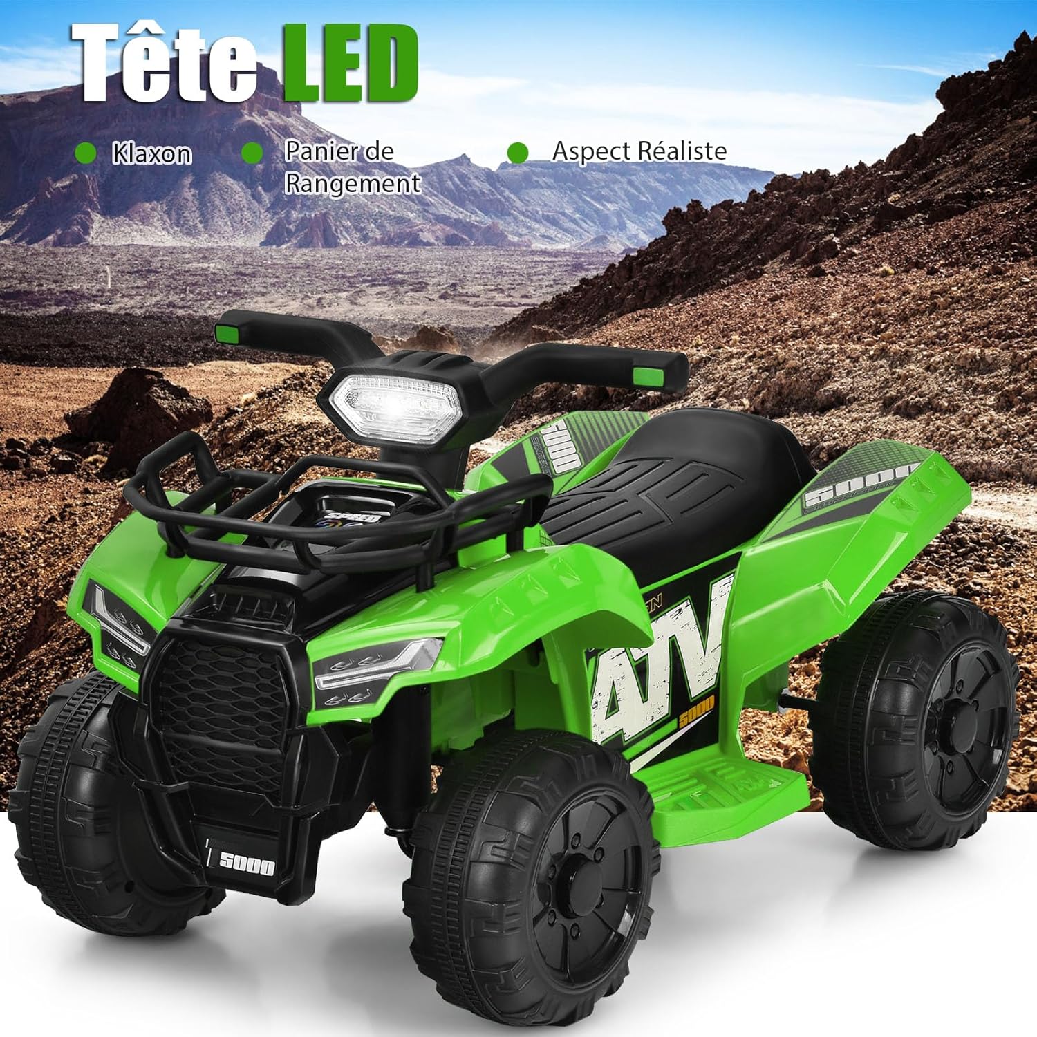 | Libellé | Mini voiture électrique 6v enfant,télécommande effets sonores lumineux led, klaxon et repose-pieds,vert |