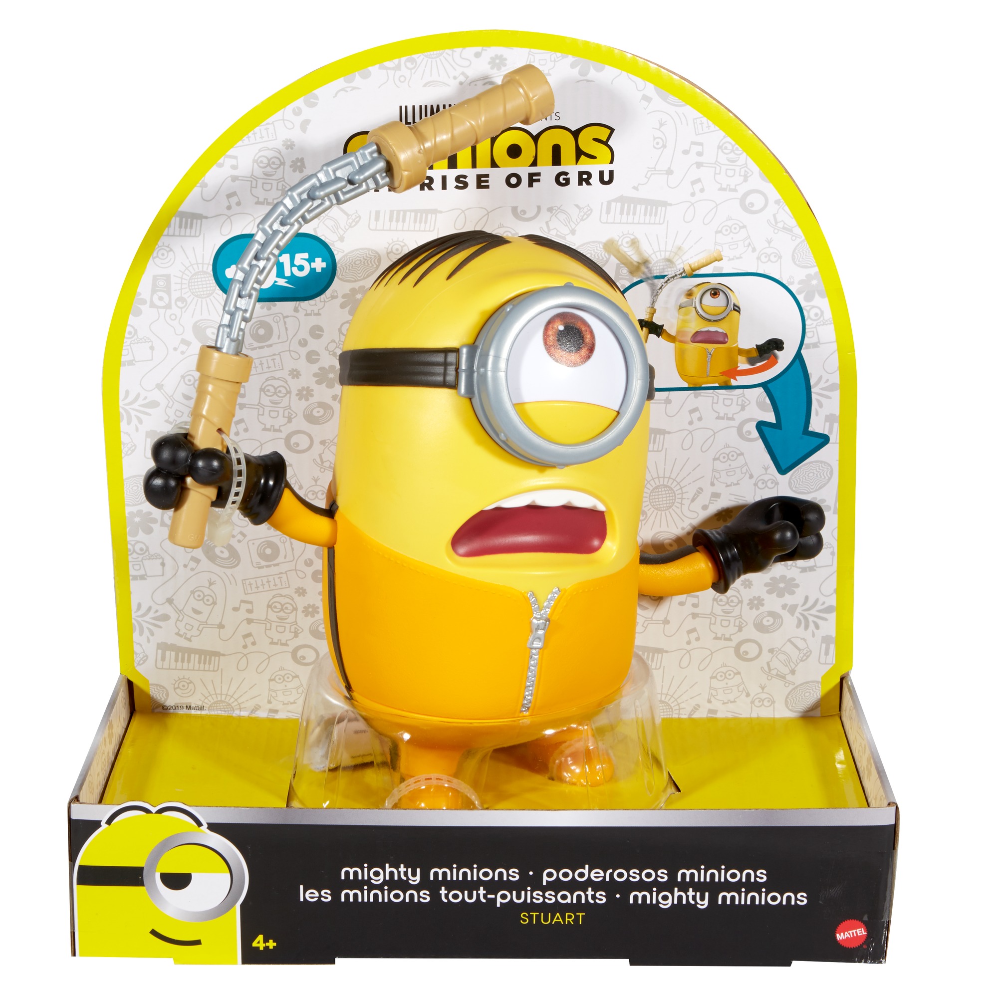 Plus produit Figurine Stuart de 18 cm inspirée du film « Minions 2 : Il était une fois Gru », avec action de kung-fu et plus de 15 sons différents. § Activation manuelle pour de superbes moments de jeu interactifs. § Collectionnez également la figurine Kevin qui utilise un pistolet à prout télescopique et émet aussi plus de 15 sons de Minion. § Chaque figurine possède des articulations de base et présente une posture dynamique. § À partir de 4 ans.