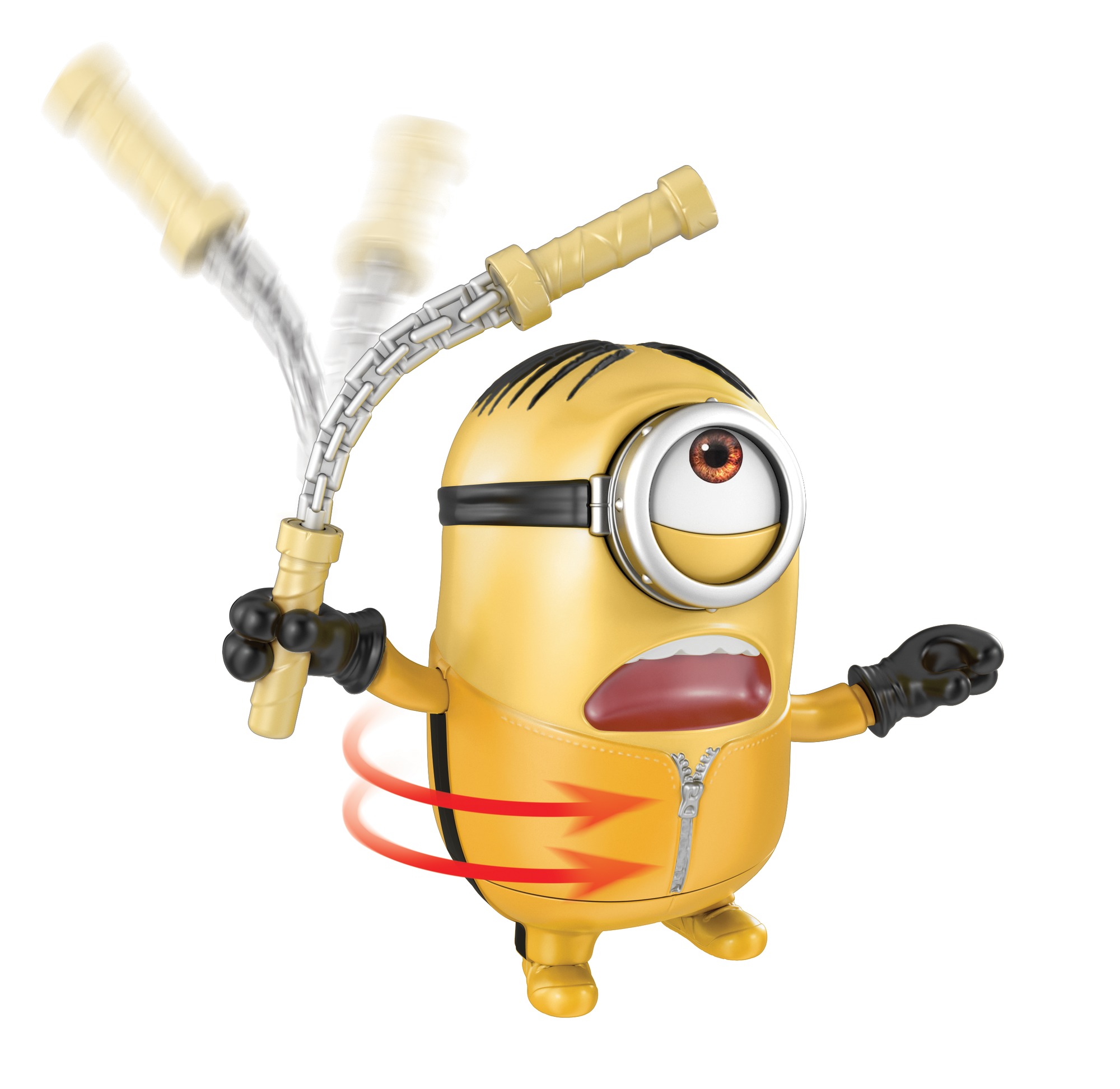 Recréez les scènes délirantes du film « Minions 2 : Il était une fois Gru » avec cette figurine parlante Stuart. Activez manuellement la figurine (environ 18 cm) pour des moments de jeu amusants et interactifs. Elle émet plus de 15 sons issus de la langue des Minions. Devenez un pro des arts martiaux avec Stuart qui porte une tenue de kung-fu et un nunchaku amovible. Faites pivoter son torse pour quil utilise son nunchaku tout en faisant des bruits de combat.