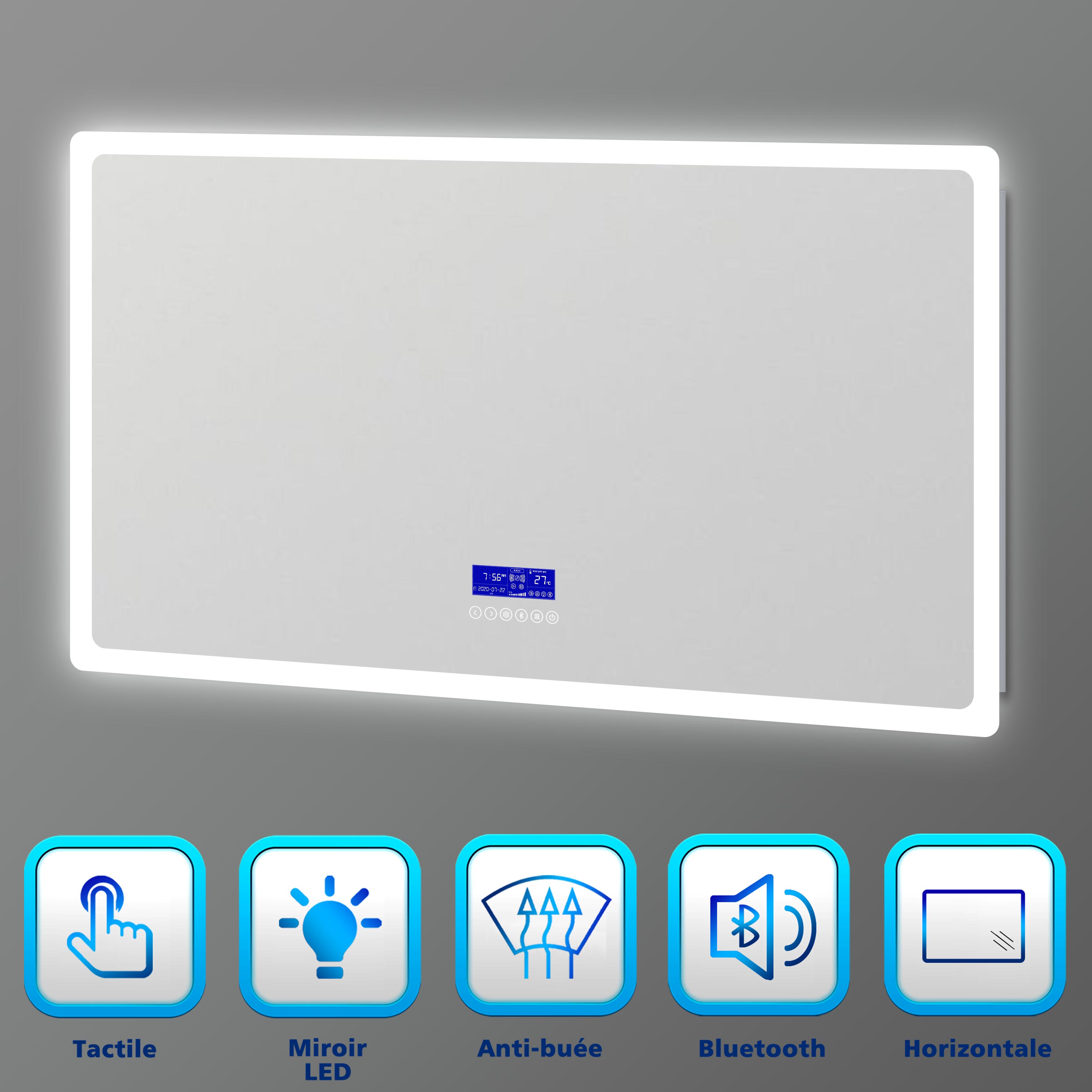 Miroir anti-buée LED + Bluetooth pour la musique, temperature lumière changeable