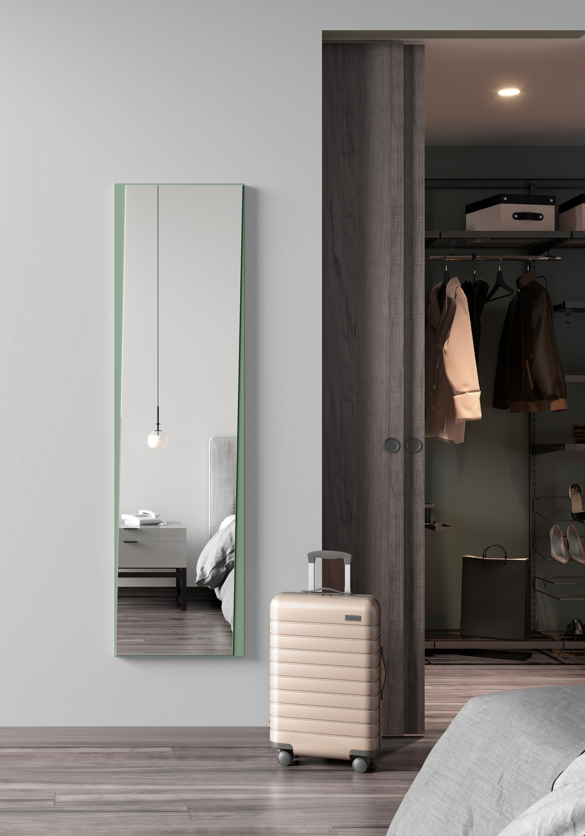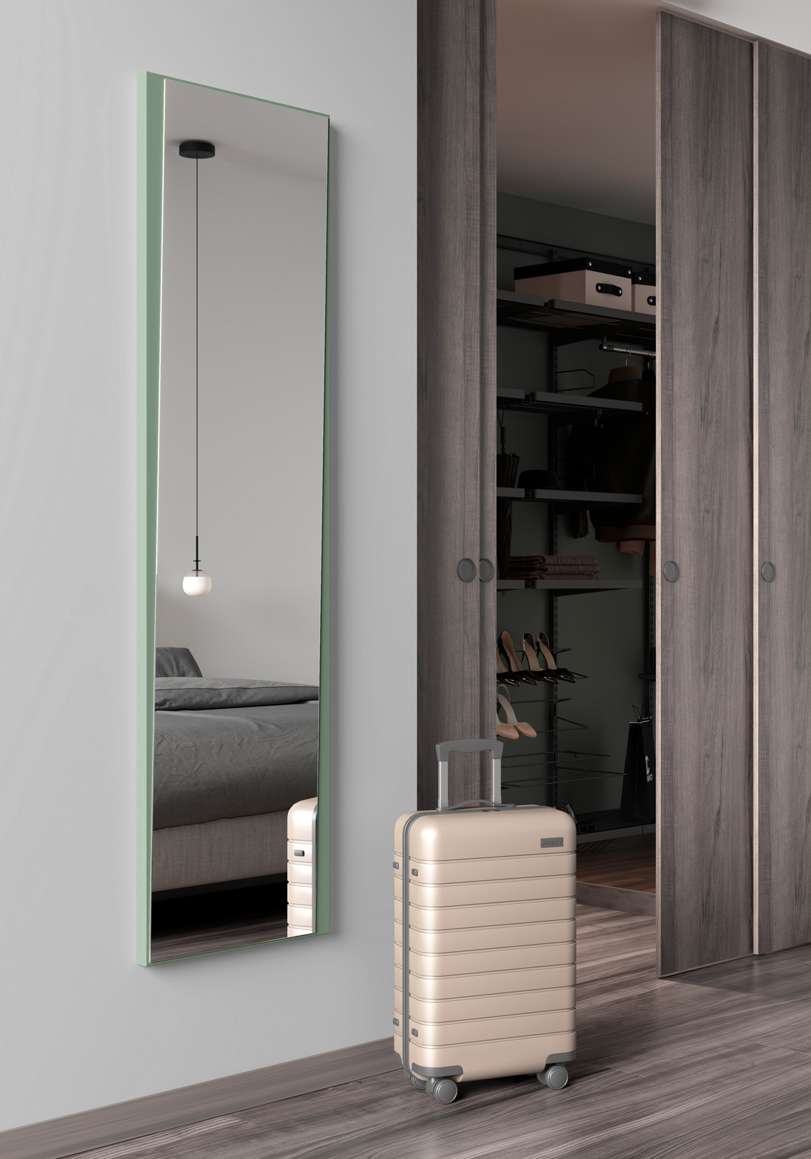 Miroir Asymétrique Pleine Longueur 167x46, collection Looker, en MDF plaqué en bois, laqué vert