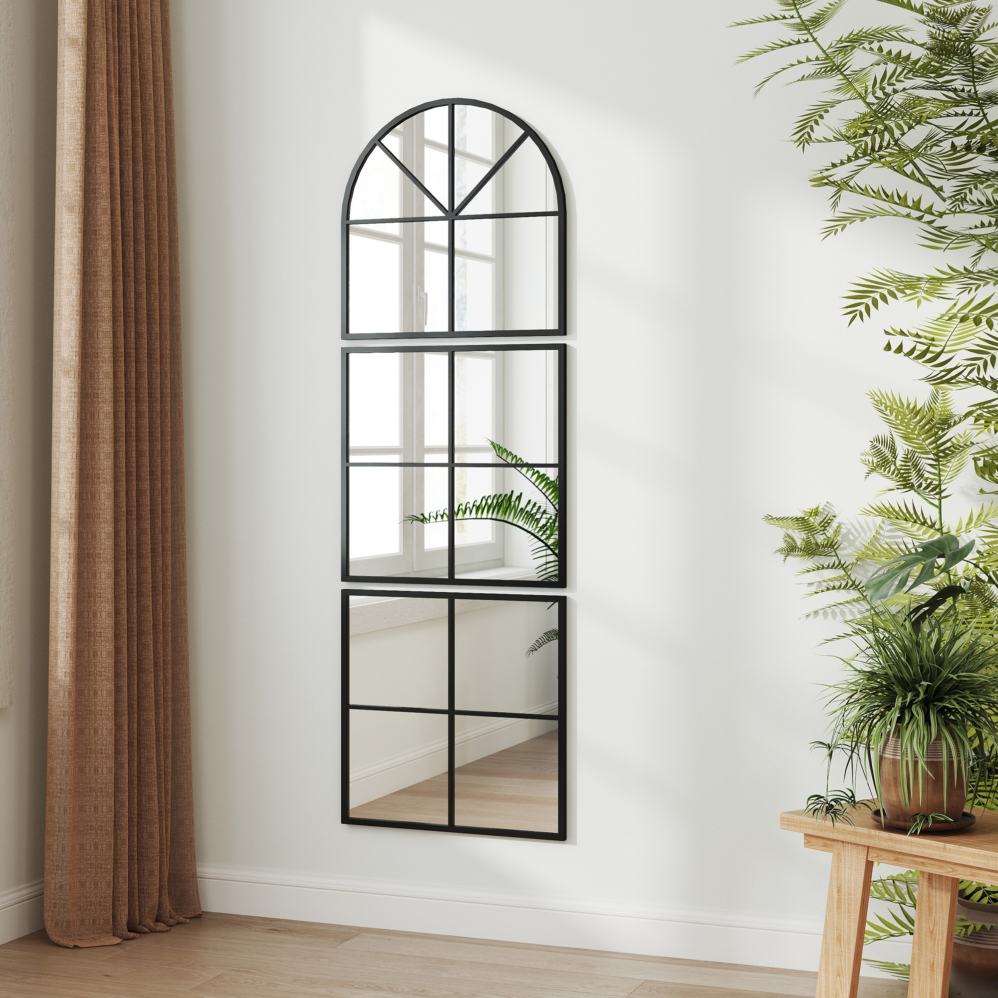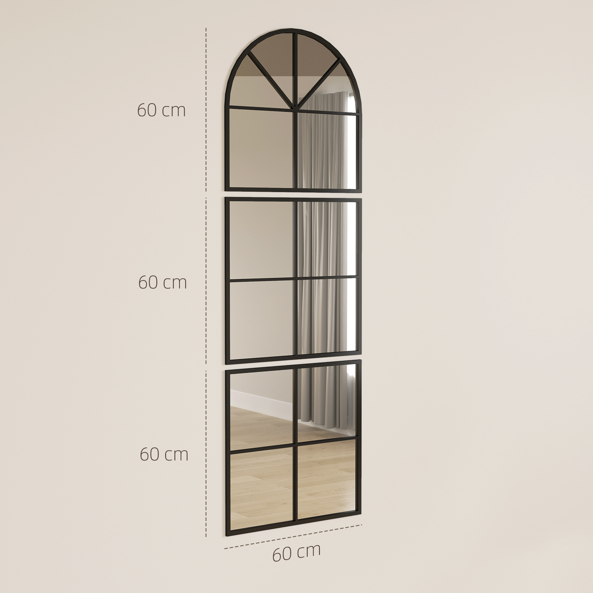 | Libellé | Miroir atelier - miroir triptyque métal 60x180 cm - miroir mural style verrière ensemble de 3 pièces - noir |
