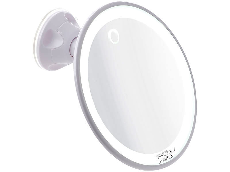 Miroir cosmétique à éclairage LED et grossissement 5x - À ventouse