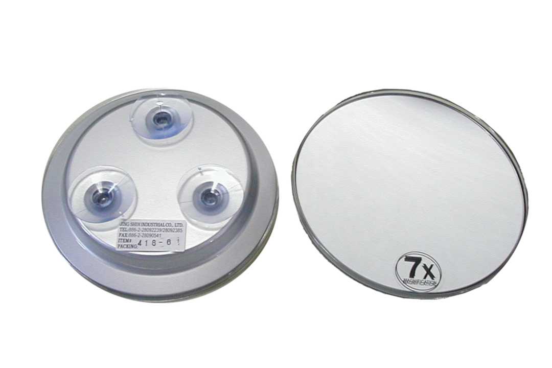 Miroir Grossissant Ventouse Chromé - X7 Miroir rond transparent, avec 3 ventouses, fixable sur tous supports, facilement transportable, grossissement X7. A sa place dans vos salles de bains. Léger, pratique et facilité d'utilisation sont ses points forts. Détails: Grossissement X7 / Ø15 cm / 500g