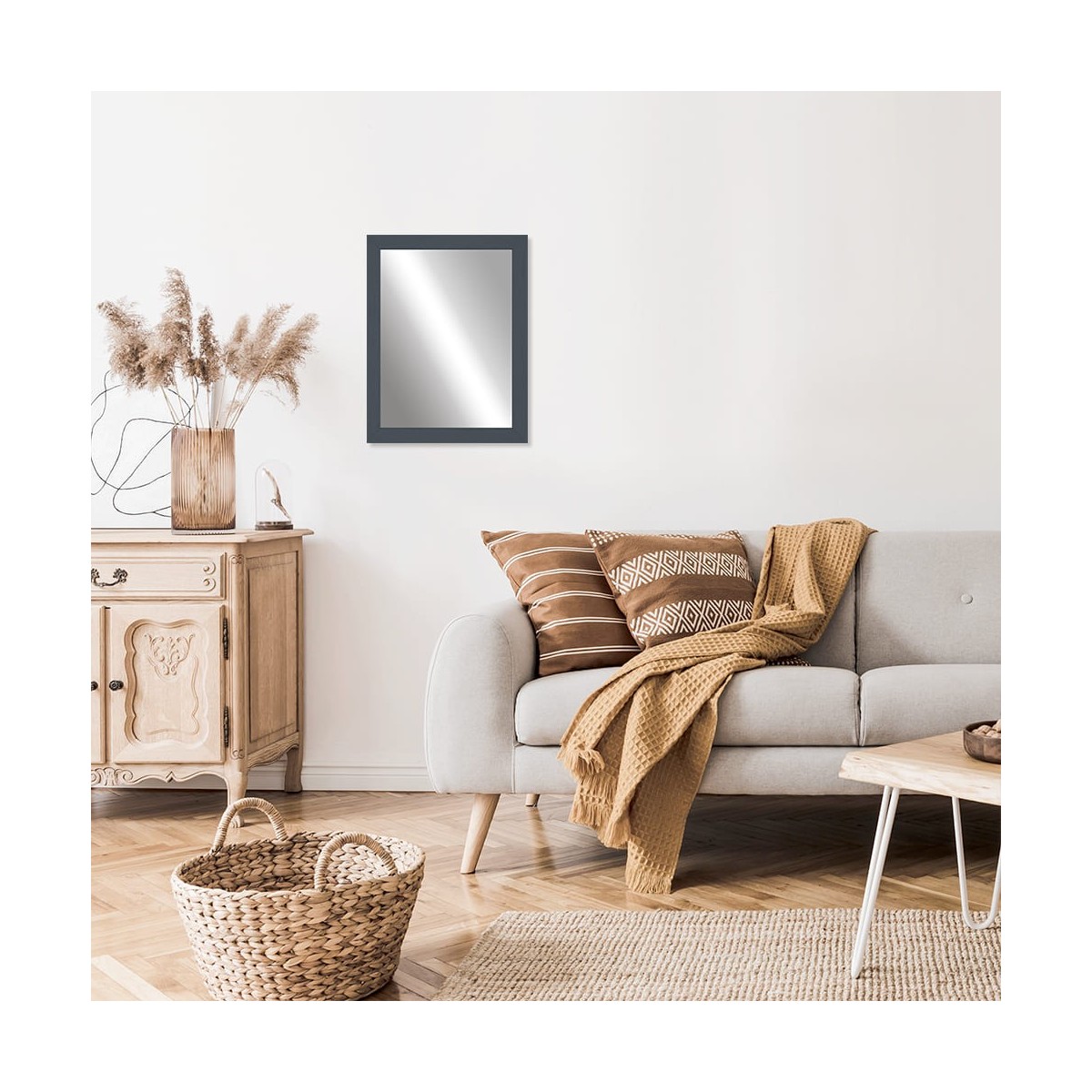 Grâce à ce miroir Karma gris bleuté 45x55 cm, votre pièce sera plus lumineuse et donnera une impression d'agrandissement. Avec sa baguette grise bleutée vieillie, il habillera élégamment vos murs. Dimensions (LxPxH) : 44,7x1,2x54,7 cm