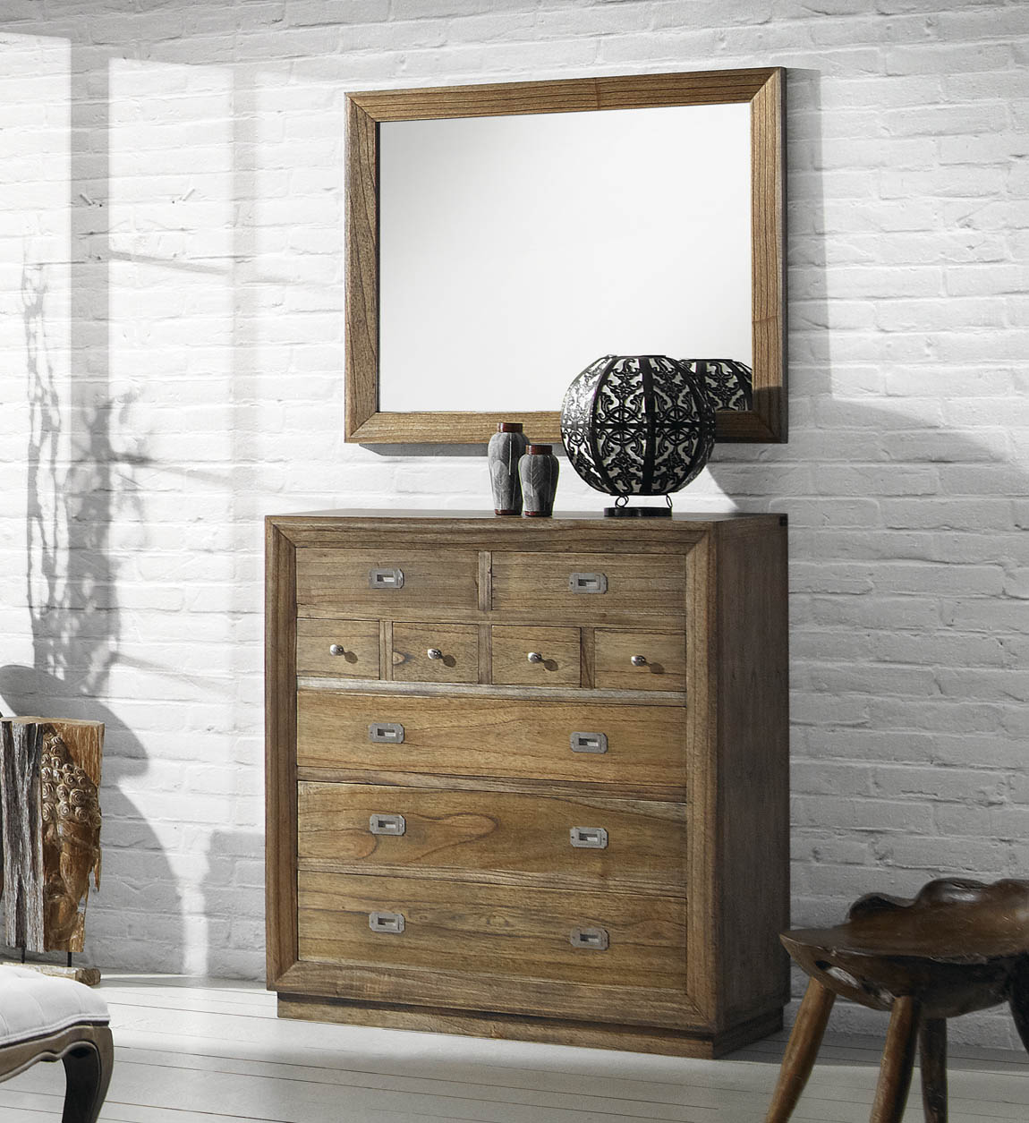 Le miroir mural MAZARI combine l’élégance naturelle du bois massif de Mindi avec un format plus compact, parfait pour habiller vos murs tout en conservant un style chaleureux et authentique. Conçu artisanalement, il apporte du cachet et de la luminosité à votre décoration, que ce soit dans un salon, une chambre ou une entrée.