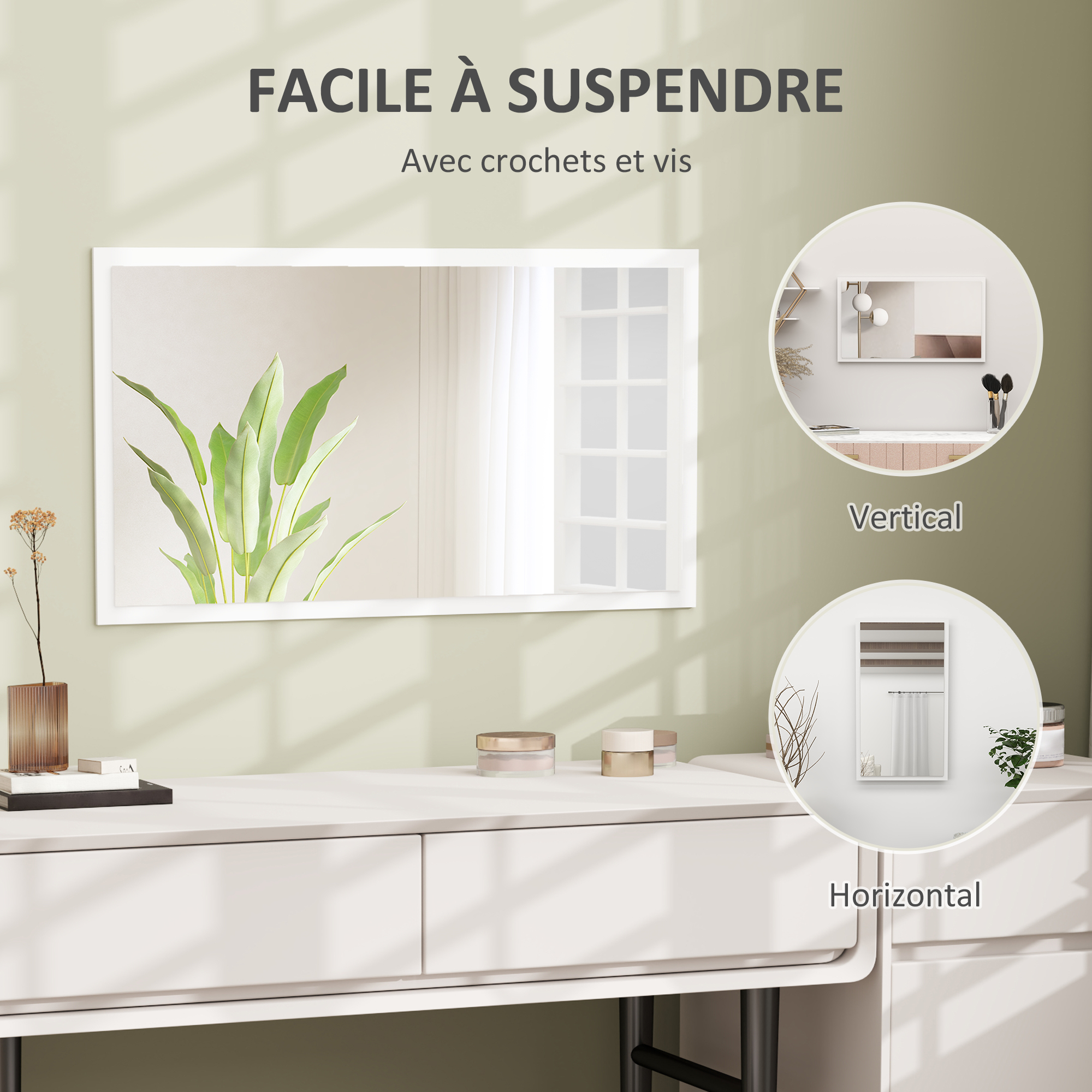 Miroir mural rectangulaire 70L x 40H cm - installation horizontale ou verticale - verre 5 mm - cadre blan