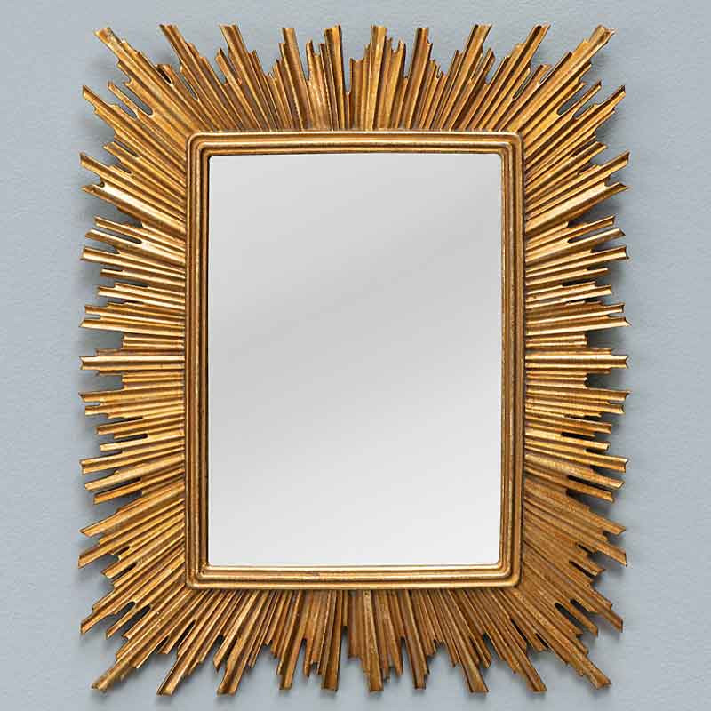 | Libellé | Miroir soleil convexe rectangulaire doré 24x29cm |