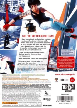 Dans une ville où les flux d'informations sont surveillés de près, des coursiers agiles plus connus sous le nom de Messagers transportent les données les plus sensibles en toute confidentialité. Cependant, dans ce prétendu paradis utopique, un crime a été commis, votre soeur a été emprisonnée, et vous êtes maintenant poursuivie. Vous incarnez une Messagère nommée Faith. Dans ce jeu d'action-aventure à la première personne, votre histoire vous appartient. Développé par les créateurs de la franchise révolutionnaire Battlefield, Mirror's Edge constitue une expérience d'action-aventure sans précédent.