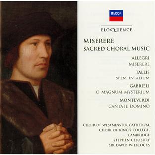 | Liste des pistes | 1.1 . miserere mei (allegri) - Willcocks, David 1.2 . exsultate deo (palestrina) - Willcocks, David 1.3 . peccantem me quotidie (palestrina) - Willcocks, David 1.4 . crucifixus (lotti) - Willcocks, David 1.5 . o magnum mysterium (g gabrieli) - Willcocks, David 1.6 . tu es petrus (palestrina) - Willcocks, David 1.7 . agnus dei (victoria) - Willcocks, David 1.8 . adoramus te (monteverdi) - Willcocks, David 1.9 . cantate domino (monteverdi) - Willcocks, David 1.10 . salve regina (cavalli) - Willcocks, David 1.11 . jubilate deo (g gabrieli) - Willcocks, David 1.12 . nunc dimittis (byrd) - Willcocks, David 1.13 . spem in alium (tallis) - Willcocks, David |