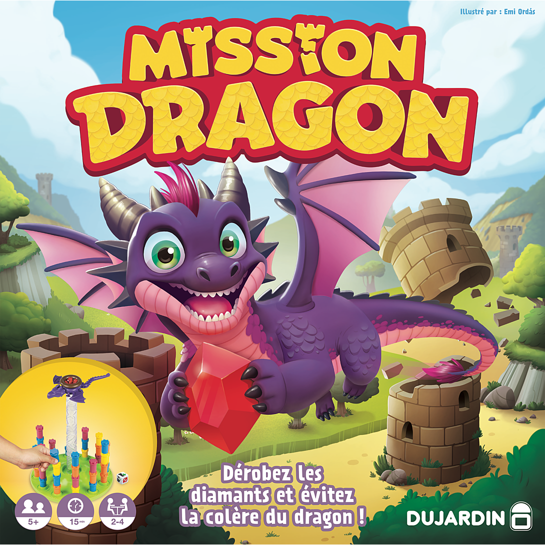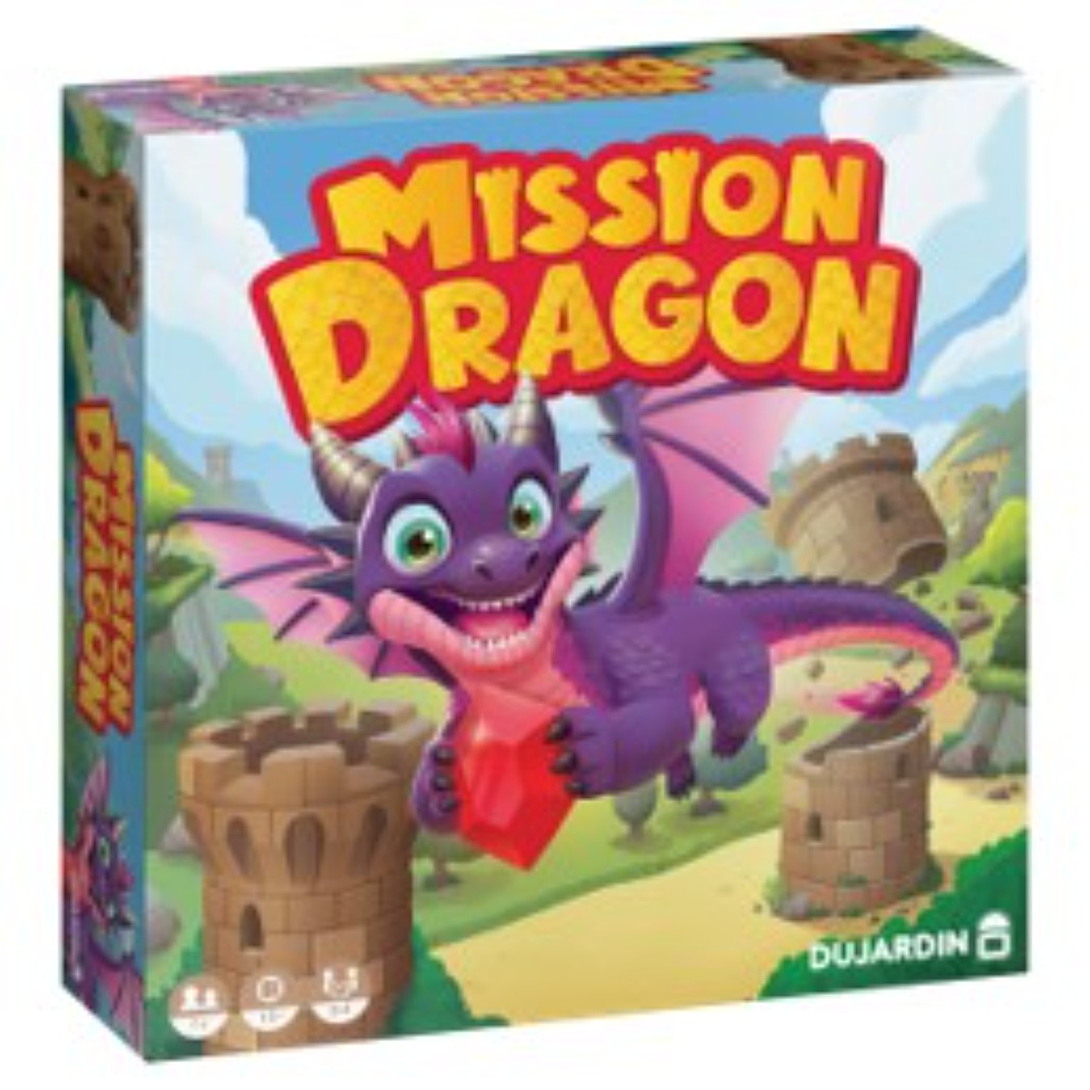 Dans Mission Dragon, les joueurs doivent construire la plus haute tour possible en lançant les dés pour voler les rubis soigneusement gardés par le dragon ! Mais attention : lorsque le dernier rubis est volé, le dragon se déchaîne et détruit toutes les tours sur son passage... A l'issue de cette attaque féroce, les joueurs marquent des points en fonction de la hauteur de leur tour restante et des rubis qu'ils ont réussi à voler !