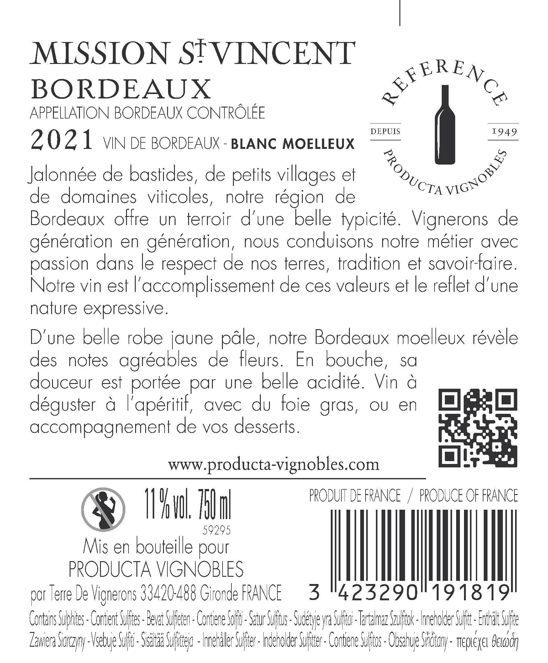 | Libellé | Mission Saint Vincent, 2023 - Bordeaux Blanc AOP - Blanc Moelleux - 75 cl |
