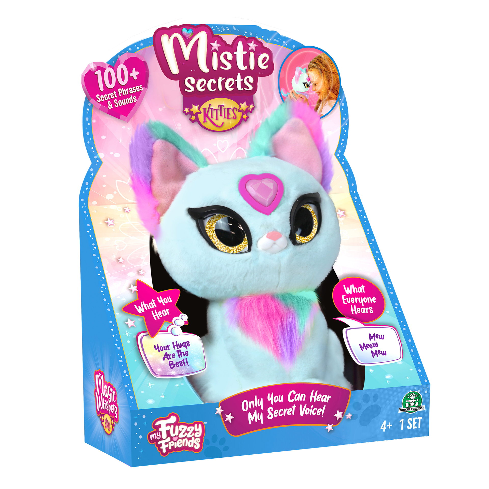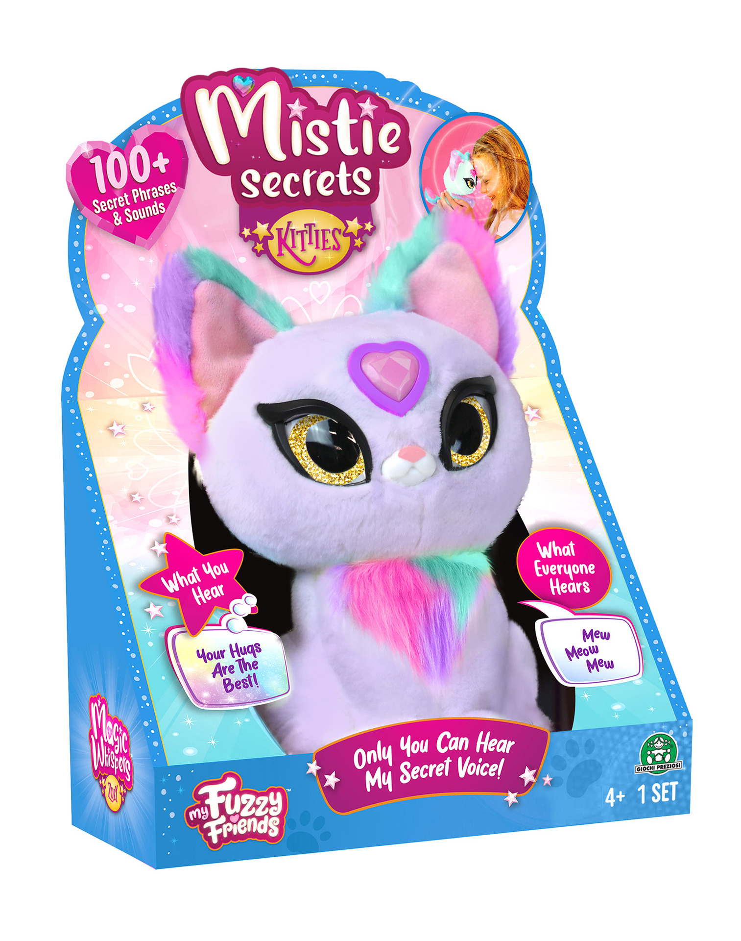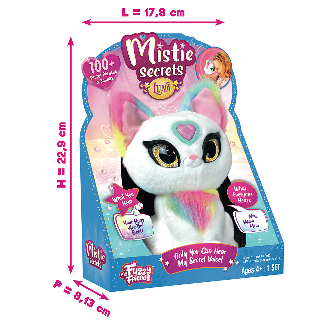 Plus produit INTERACTIVE: Peluche interactive qui te dit des secrets : toi seul peut entendre ses secrets et jouer avec Mistie Secrets! COEUR MAGIQUE: Place le coeur magique situé sur le front de Mistie Secrets pour entendre ses secrets et jouer avec elle! 3 MODES DE JEU : Mode Discussion Secrète, Mode Oui / Non, Mode Blague MODELE ALEATOIRE: Découvre Luna, Trixie ou Cléo. LANGUE: Parle en français PILES REQUISES : Fonctionne avec 3 piles AAA non incluses. AGE : Pour les enfants à partir de 4 ans.