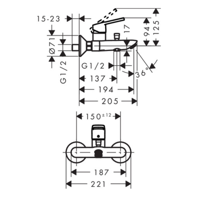 Libellé Mitigeur bain douche mécanique HANSGROHE Logis Loop chromé
