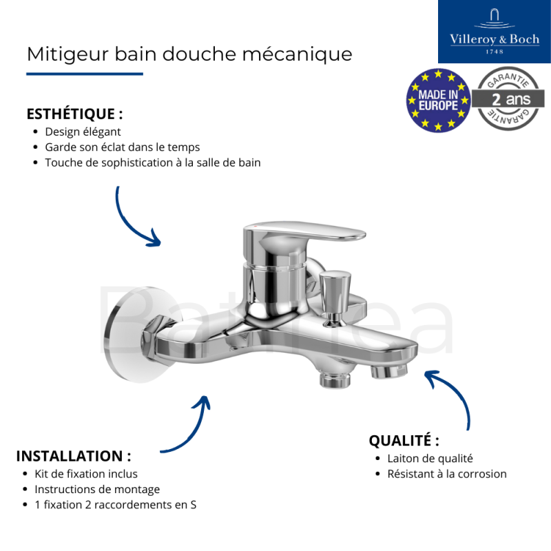 | Libellé | Mitigeur bain douche mécanique VILLEROY ET BOCH O novo Start Chrome |