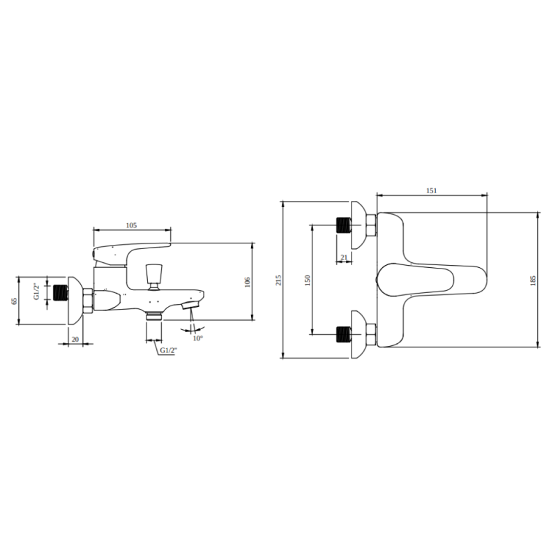 Caractéristiques techniques du mitigeur bain douche mécanique O novo Start Chrome