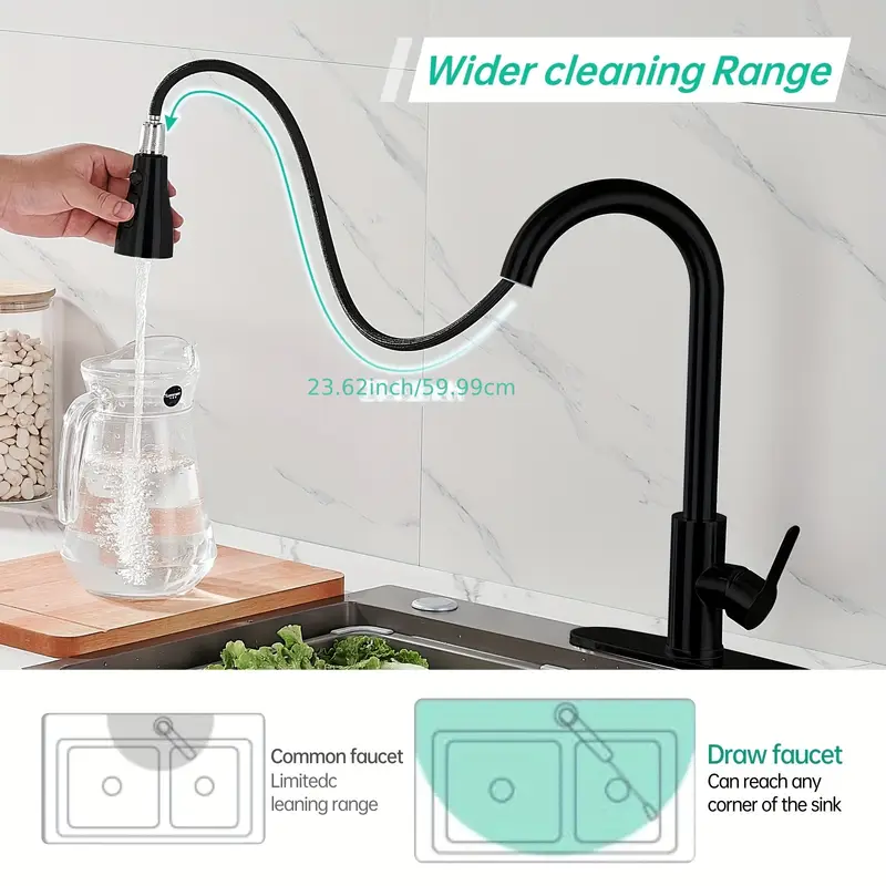 Ce robinet d'eau chaude et froide pour l'évier de cuisine est certainement un choix idéal pour améliorer votre expérience en cuisine. Il est fabriqué en acier inoxydable 304, qui présente une excellente résistance à la corrosion et peut résister à l'érosion de divers détergents et taches d'eau dans la cuisine. Il n'est pas facile de rouiller et de s'endommager après une utilisation à long terme, ce qui garantit que le robinet a toujours l'air neuf, ajoutant un sentiment de qualité durable à votre cuisine. La conception unique du bras universel extensible est un point fort. La longueur du bras extensible permet d'ajuster de manière flexible la position de sortie d'eau. Qu'il s'agisse de nettoyer tous les coins de l'évier ou de rincer des casseroles plus grandes, il peut facilement y faire face et répondre à vos divers besoins d'utilisation. Sa conception universelle le rend très adaptable. Il convient non seulement aux éviers de cuisine, mais également aux éviers de machine à laver, apportant plus de confort à votre utilisation domestique. Fournit des fonctions d’alimentation en eau chaude et froide pour répondre à différents scénarios d’utilisation. En hiver, vous pouvez utiliser de l'eau chaude pour nettoyer facilement la vaisselle très grasse ; en été, l'eau froide vous permet d'effectuer diverses tâches de nettoyage de manière plus rafraîchissante et plus pratique.