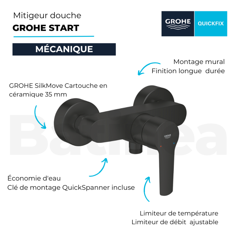Les avantages du mitigeur douche mécanique GROHE Start noir + microfibre :