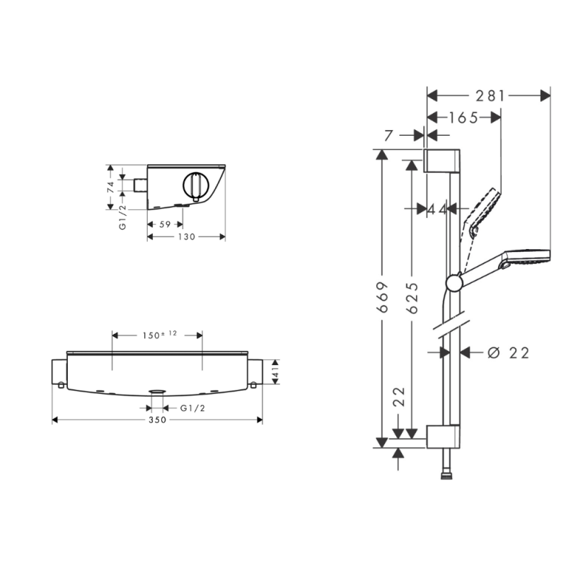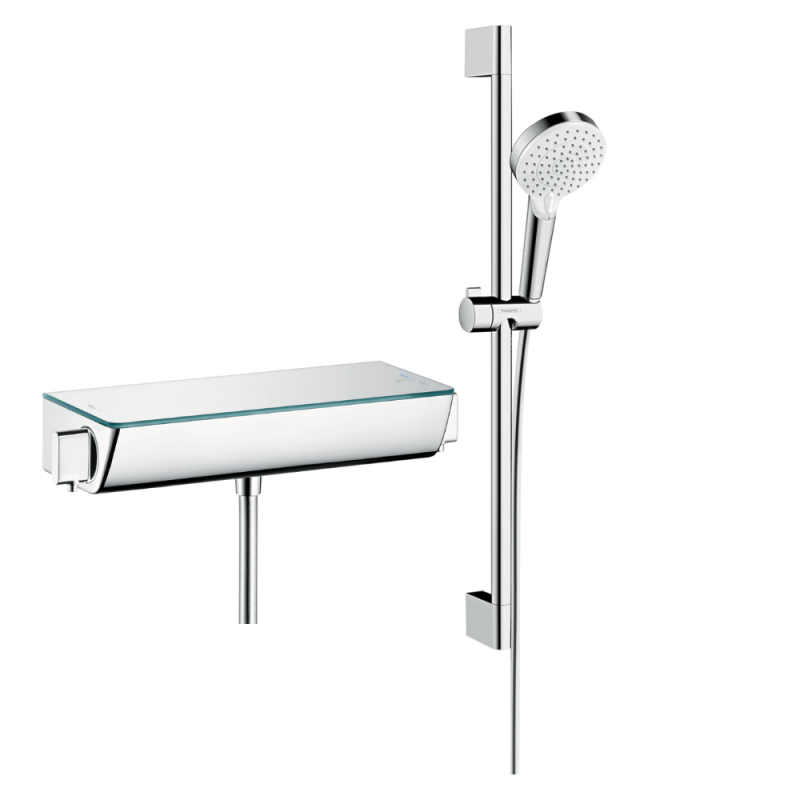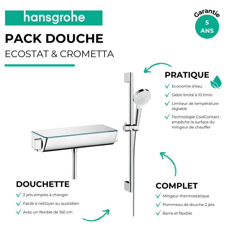 | Libellé | Mitigeur douche thermostatique HANSGROHE Ecostat Select EcoSmart chromé + pommeau de douche Crometta 2 jets + flexible + barre |