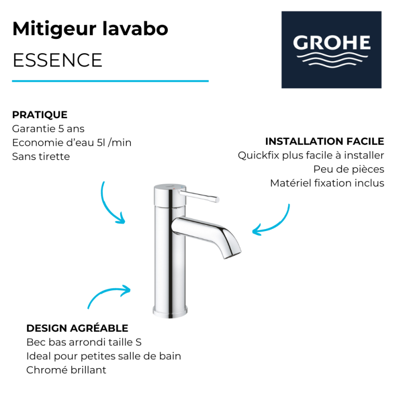 | Libellé | Mitigeur lavabo GROHE Essence AquaGuide S sans vidage |