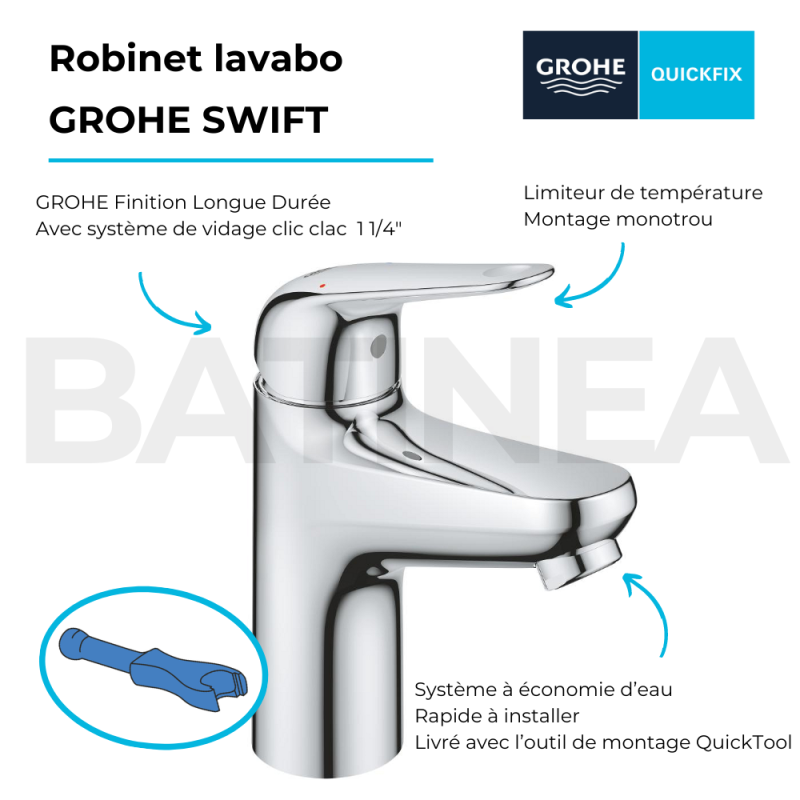 Facilité d'utilisation et d'installation : Grâce à l'outil Quicktool inclus, montez votre robinet en un rien de temps !
