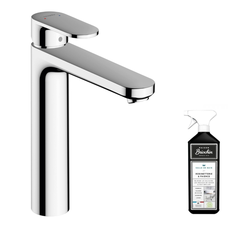 Mitigeur lavabo HANSGROHE 190 sans tirette ni vidage chrome + nettoyant Briochin