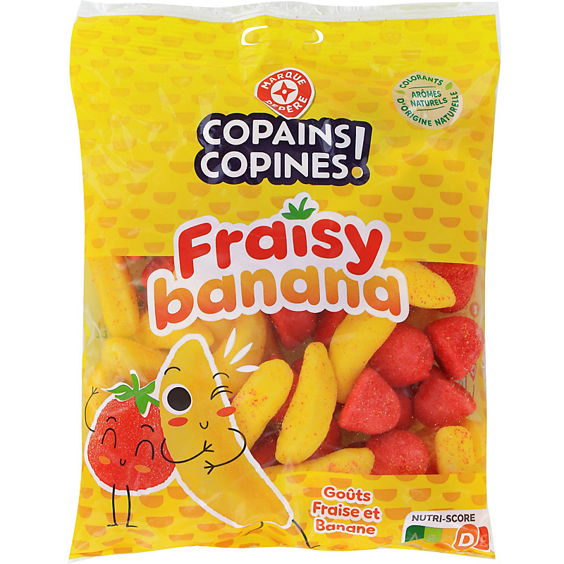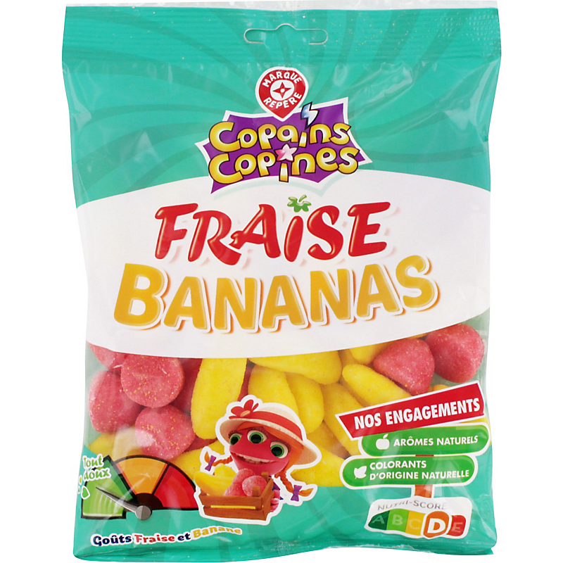 Assortiment de confiseries gélifiées goûts fraise et banane COPAINS COPINES