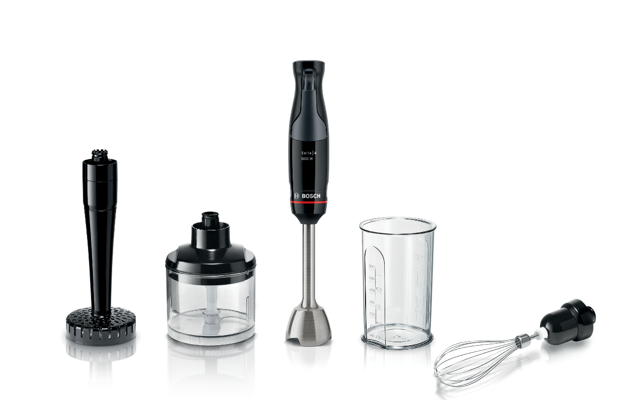 | Plus produit | Puissance 1000 W; 12 vitesses + pulse; pied amovible en acier inoxydable; parties détachables compatibles lave-vaisselle; accessoires inclus (verre mesureur, fouet) |